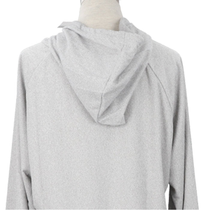 ・どなたでも着こなしやすい無地デザイン。フードやアイボリーカラーの首紐がアクセント。