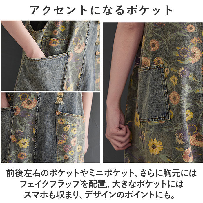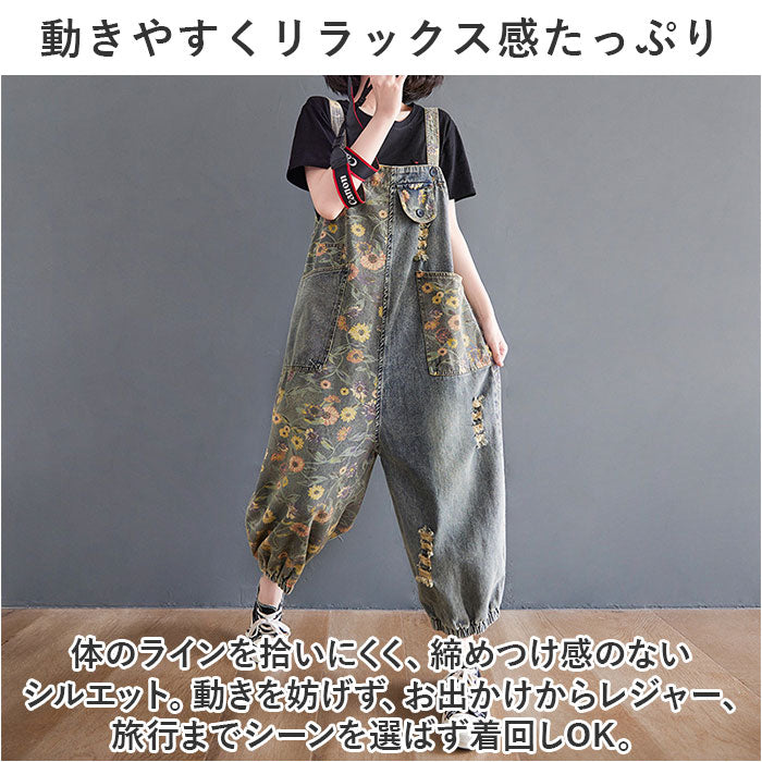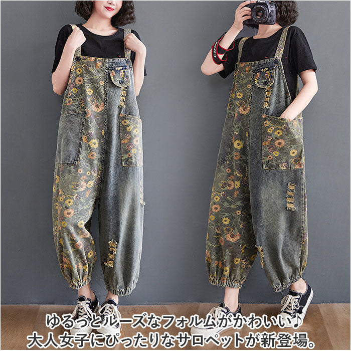 レディース オーバーオール 通販 デニム パンツ オールインワン サロペット 大人 ゆったり かわいい おしゃれ カジュアル つなぎ ロング デニムパンツ 裾ゴム ポケット付き 体型カバー