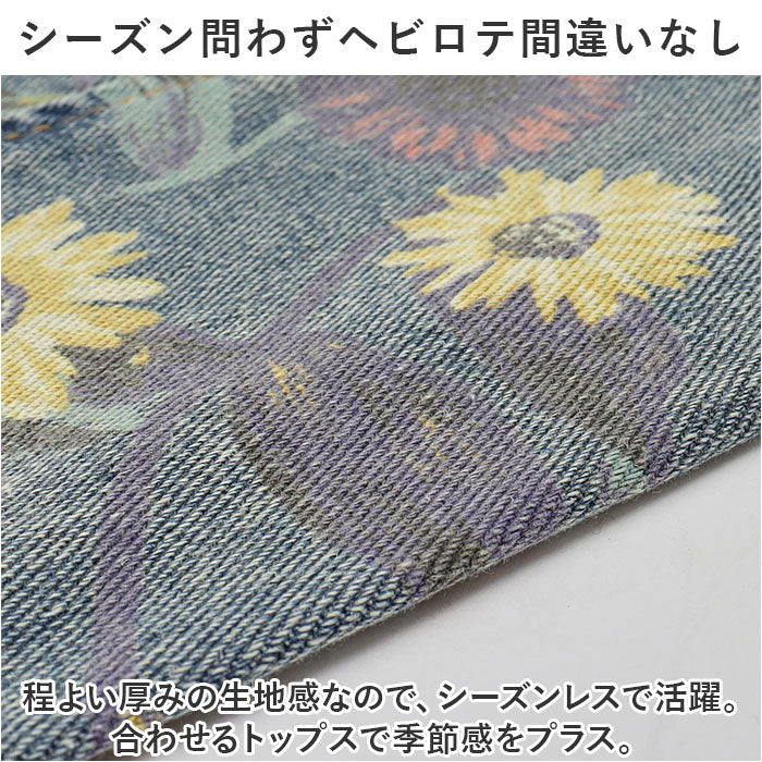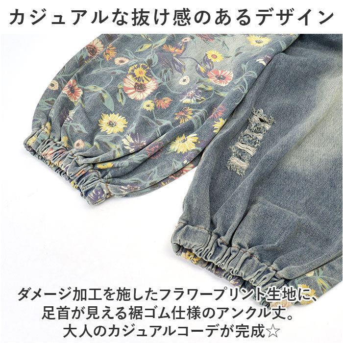 ・ダメージ加工を施したフラワープリント生地に、足首が見える裾ゴム仕様のアンクル丈。大人のカジュアルコーデが完成☆