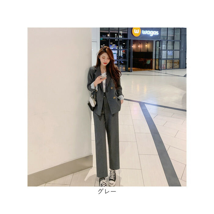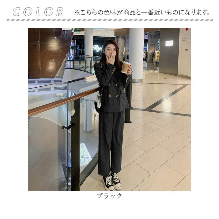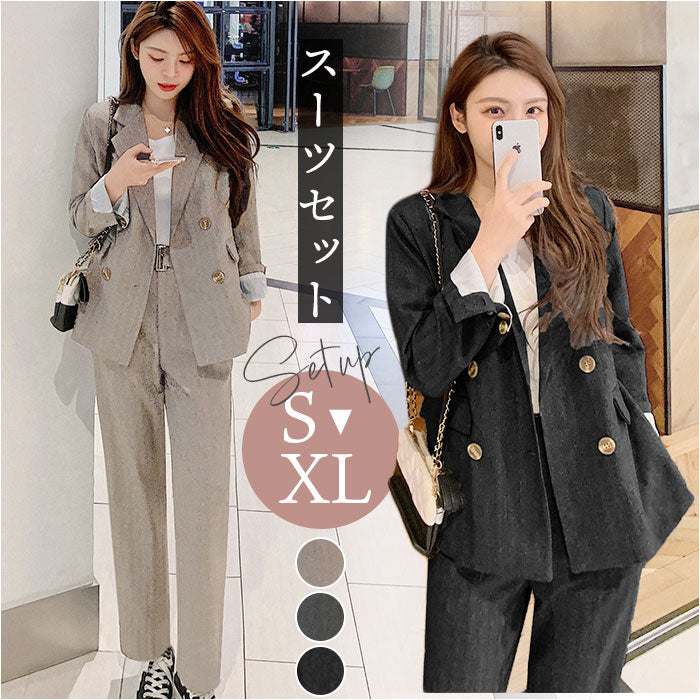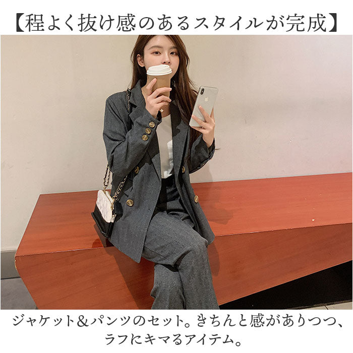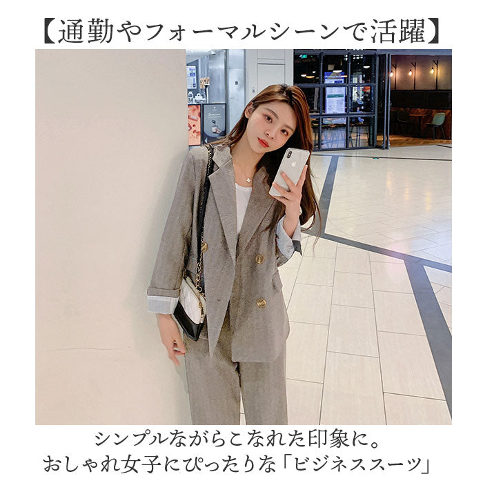 レディース スーツ セットアップ ビジネス 通販 ビジネススーツ セレモニースーツ フォーマルスーツ パンツスーツ 上下セット レディーススーツ 長袖 無地 金ボタン ビジカジ 入学式
