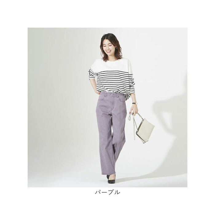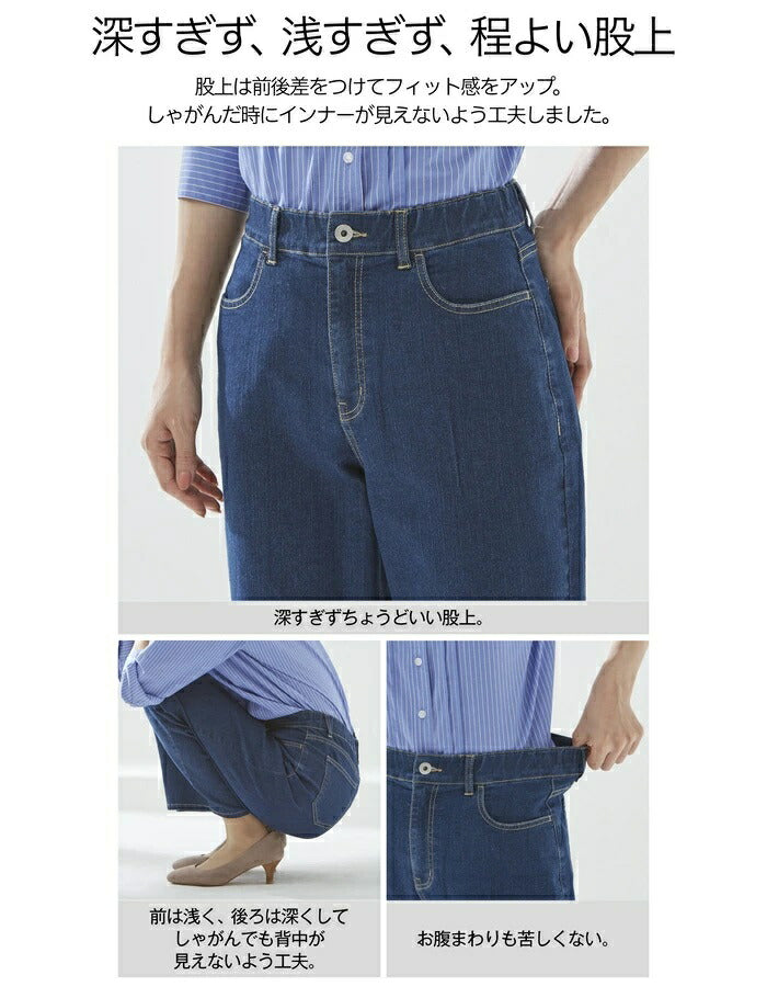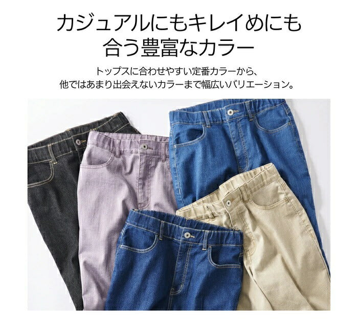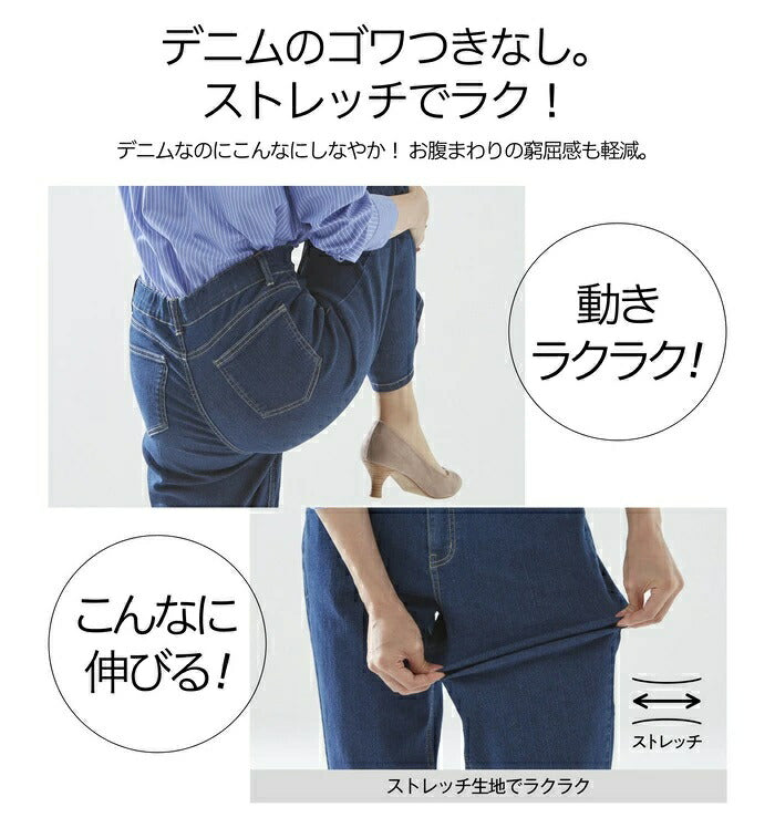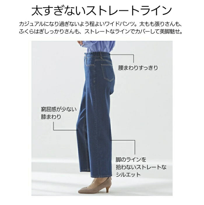 レディース デニム ワイドパンツ 通販 デニムパンツ ワイドデニム ストレッチパンツ ストレッチ ジーンズ ズボン ミセスのためのワイドデニム ウエストゴム おしゃれ シンプル カジュアル