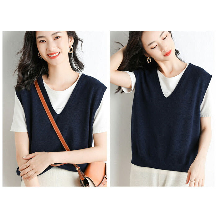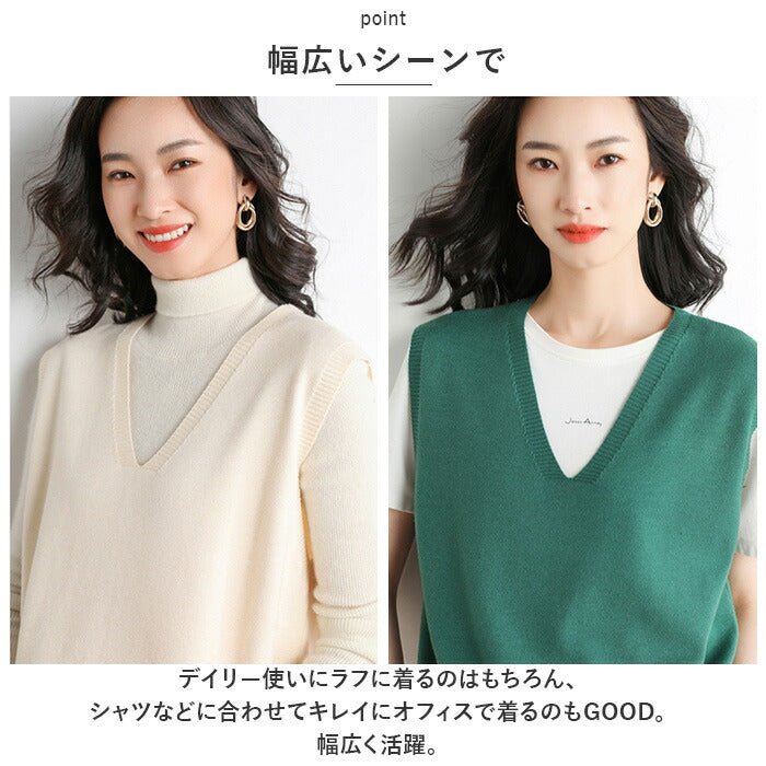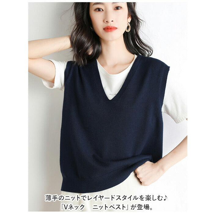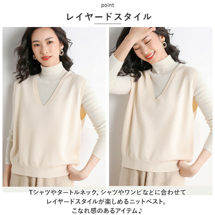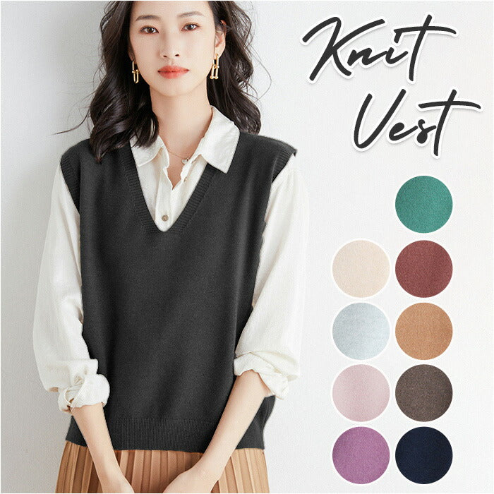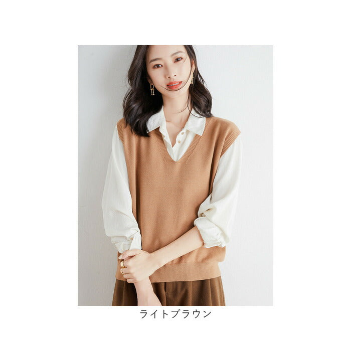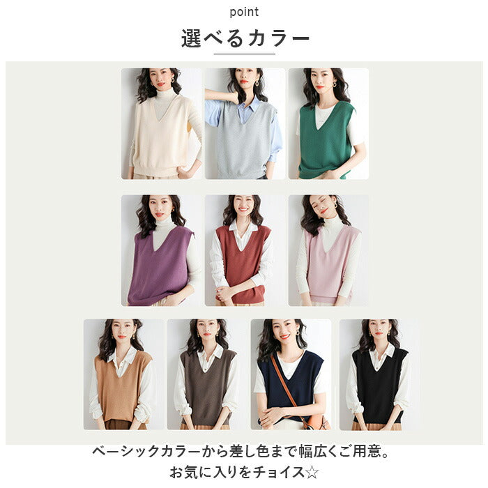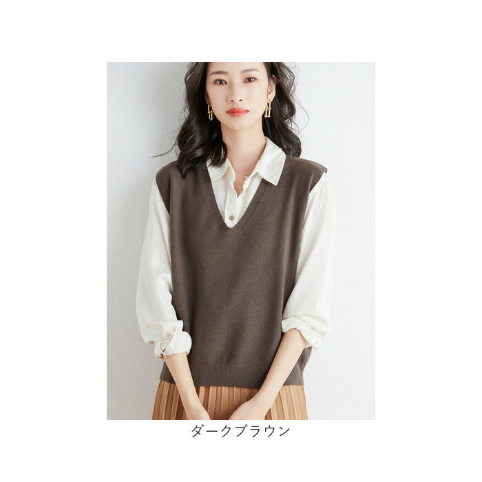 レディース ニット ベスト 通販 重ね着 レイヤード プルオーバー 普段着 Vネック 伸縮性 無地 トップス シンプル カジュアル 春 秋 冬 メンズ お出掛け お出かけ おでかけ