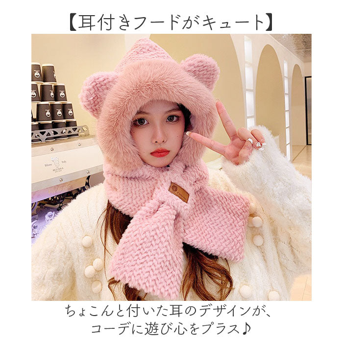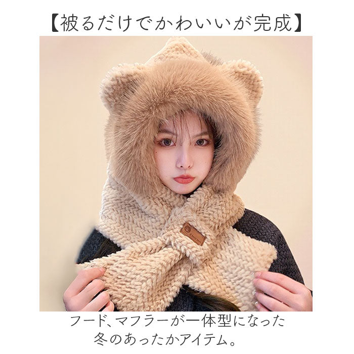 レディース フード付きマフラー 通販 マフラー 帽子 フード付き ネックウォーマー かわいい おしゃれ 帽子マフラー 防寒対策 冷え対策 暖かい 手袋 防寒 防風 保温 寒さ対策 女性 保温性
