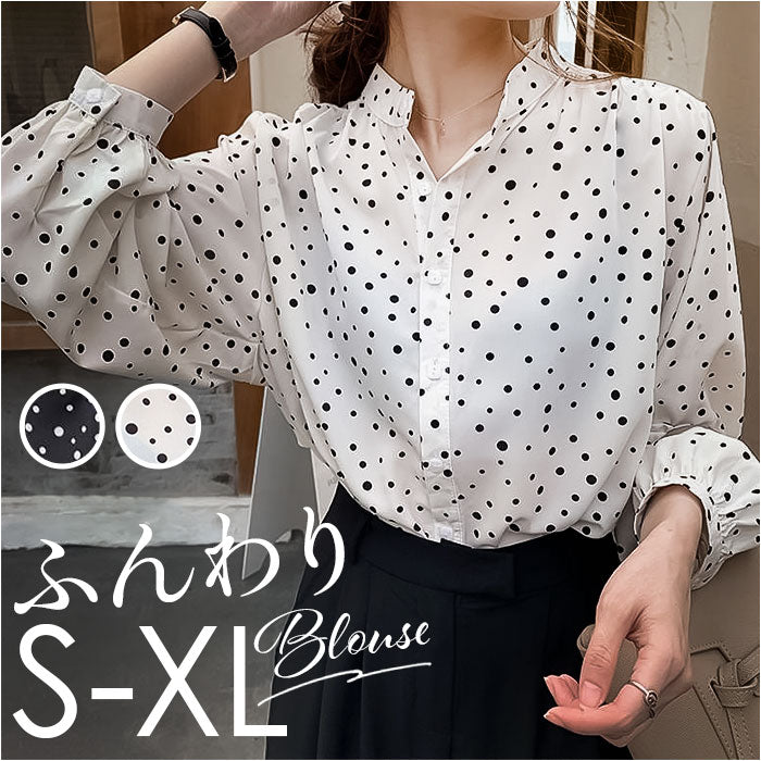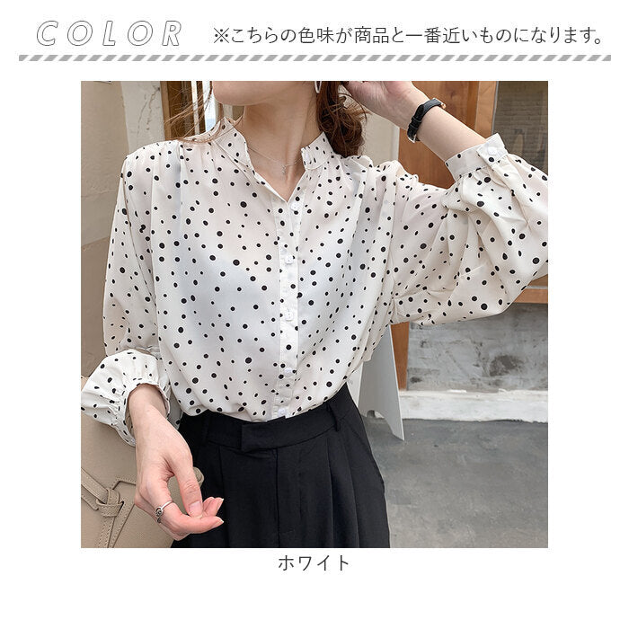 レディース ブラウス 長袖 おしゃれ 通販 シアーシャツ シアートップス スタンドカラー 透け感 ゆったり シンプル ドット 水玉 きれいめ 上品 オフィスカジュアル 通勤 オフィス