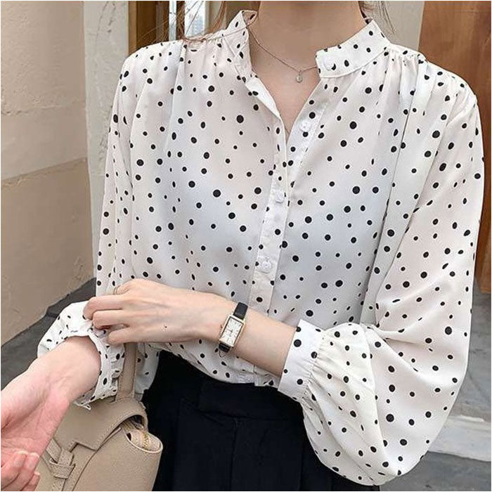 ・シンプルコーデに、程よいアクセントを。ランダムドットデザインのブラウス♪