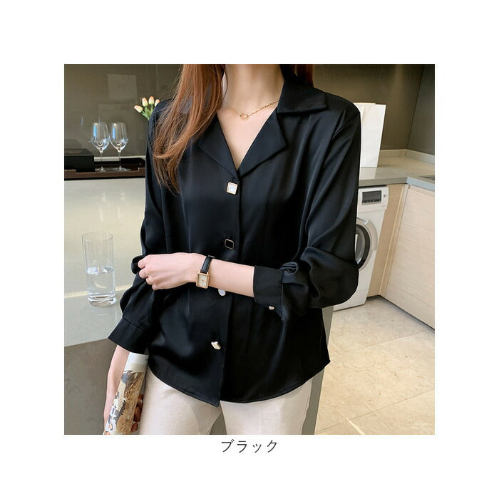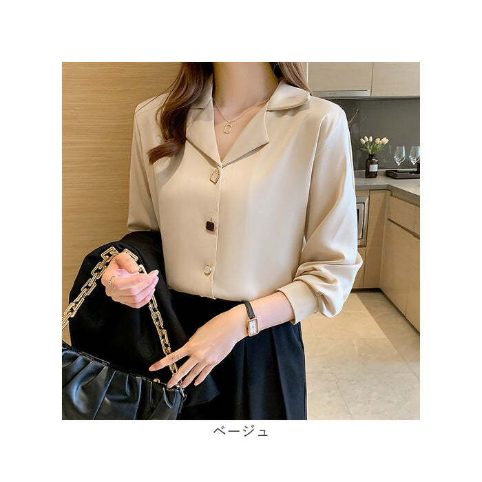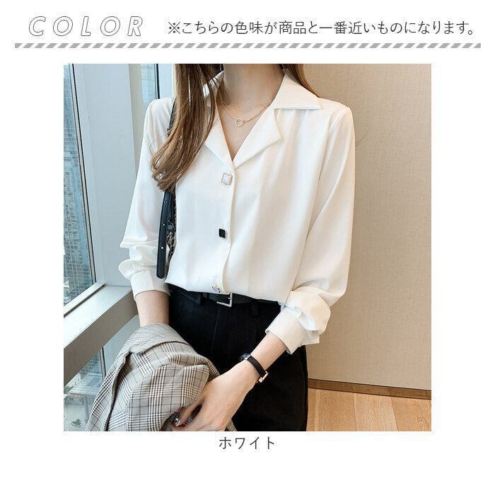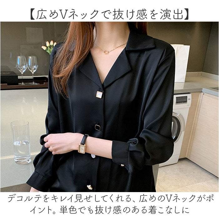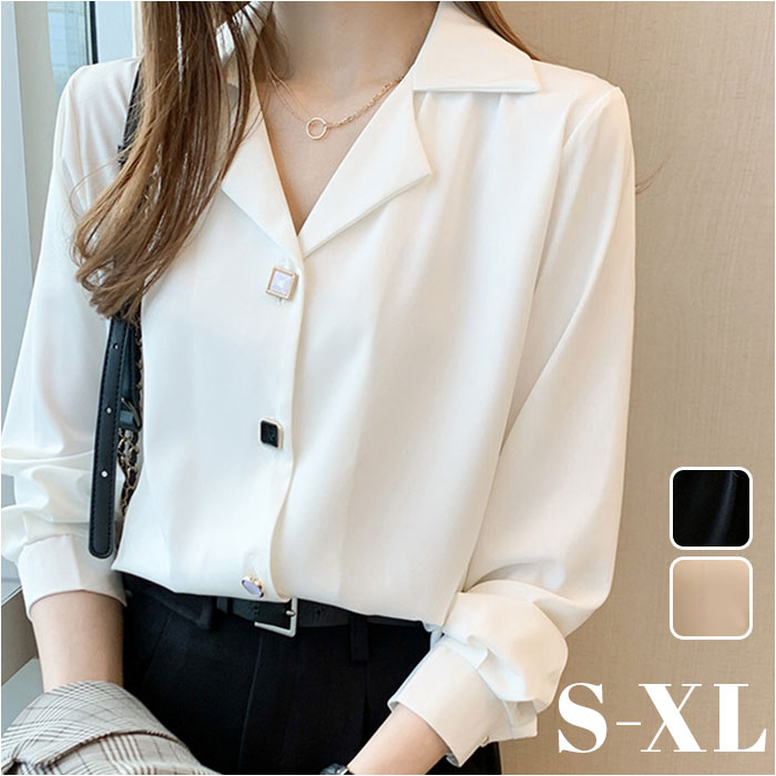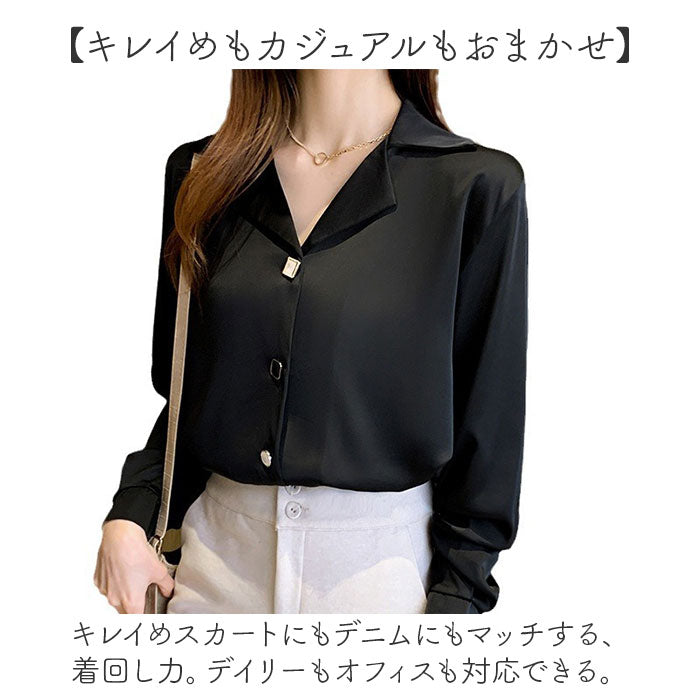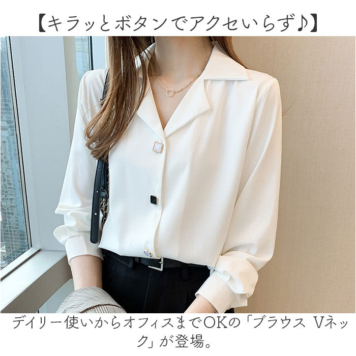 レディース ブラウス 長袖 おしゃれ 通販 スキッパーシャツ シャツブラウス 開襟シャツ ワイシャツ シャツ トップス オフィス オシャレ 襟付き きれい きれいめ Vネック 開襟 ボタン