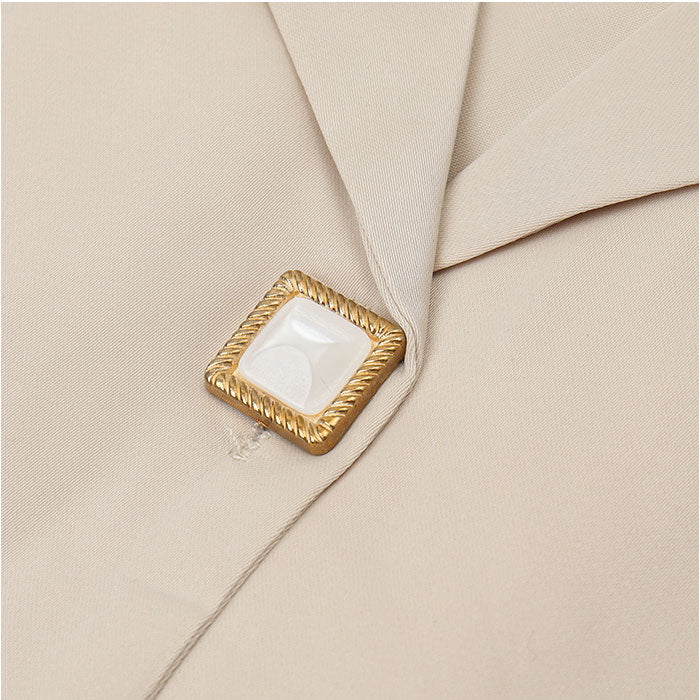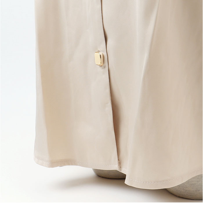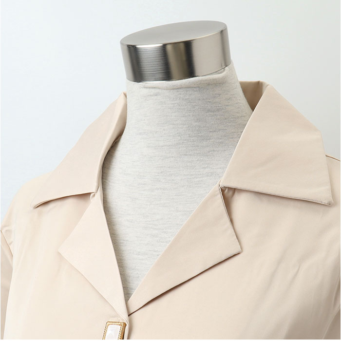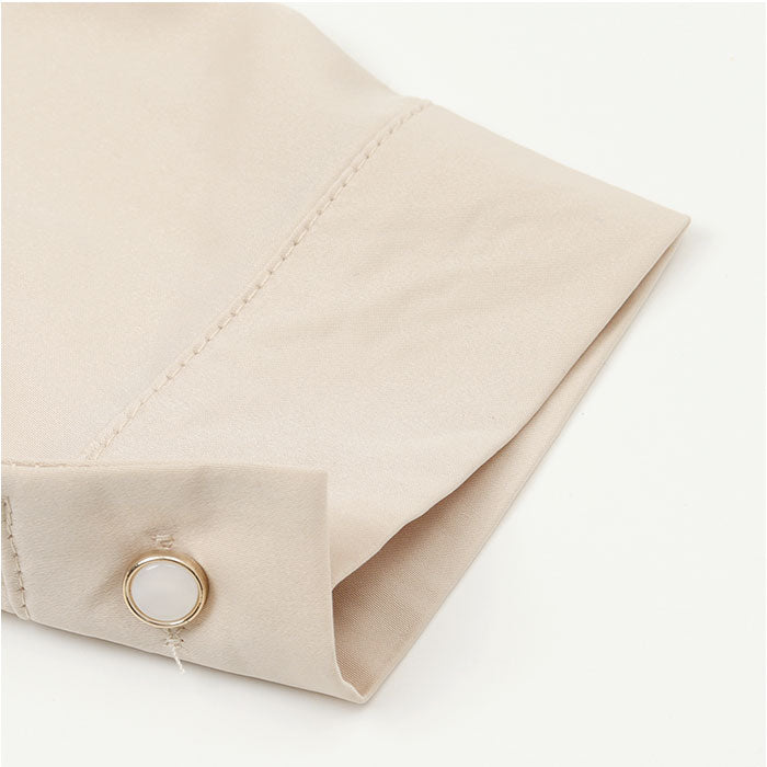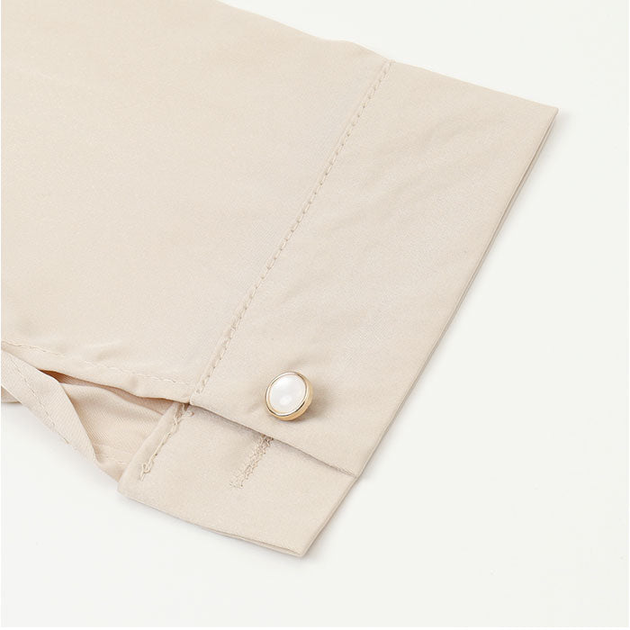 ・定番の開襟シャツにキラッとアクセサリーのようなボタンをプラス。大人っぽい遊び心がGOOD♪