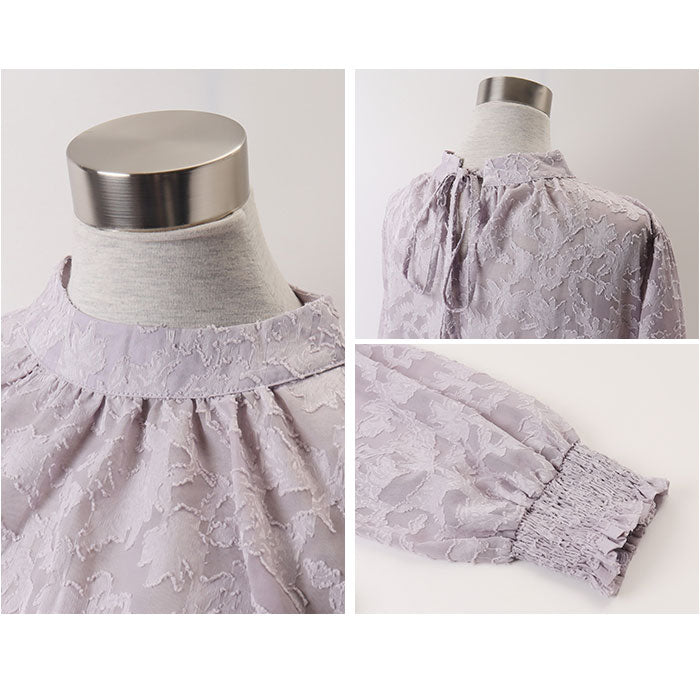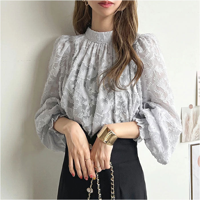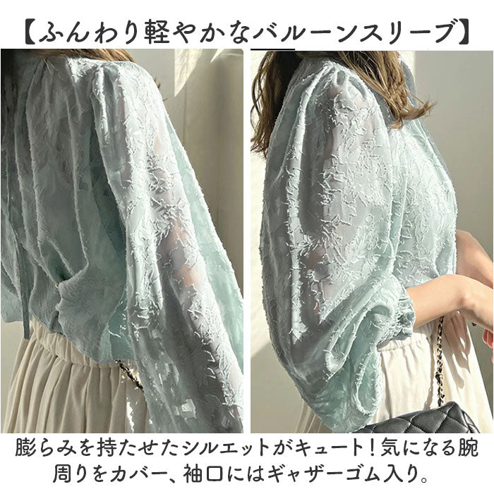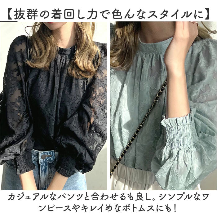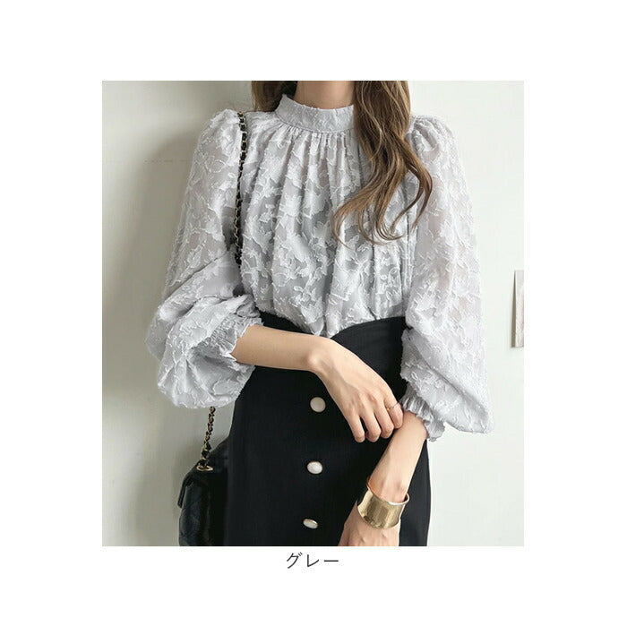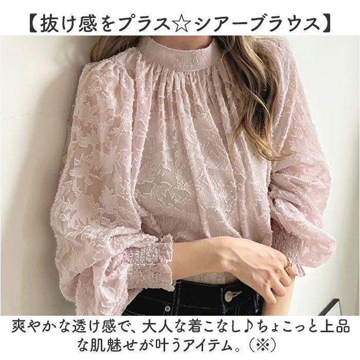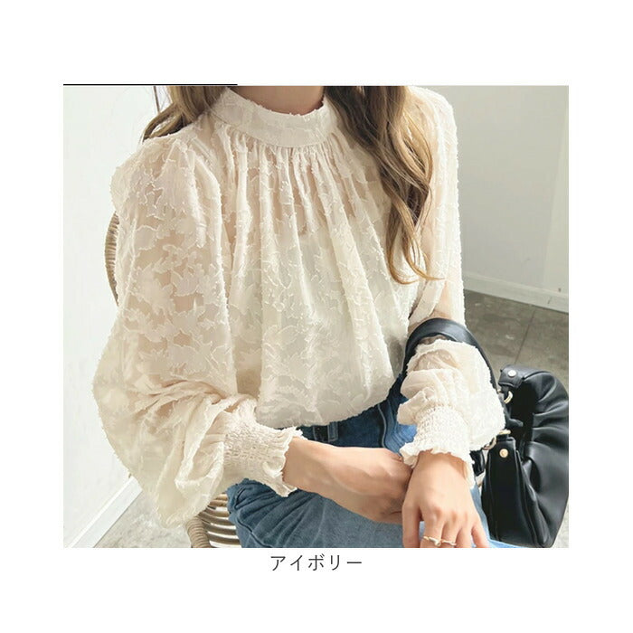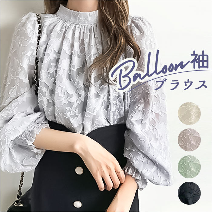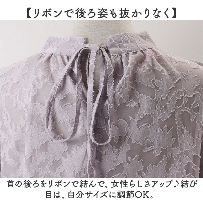 レディース ブラウス 長袖 おしゃれ 通販 スタンドカラー バルーンスリーブ リボン シアートップス ハイネック きれいめ 上品 オフィスカジュアル 通勤 オフィス カジュアル フォーマル