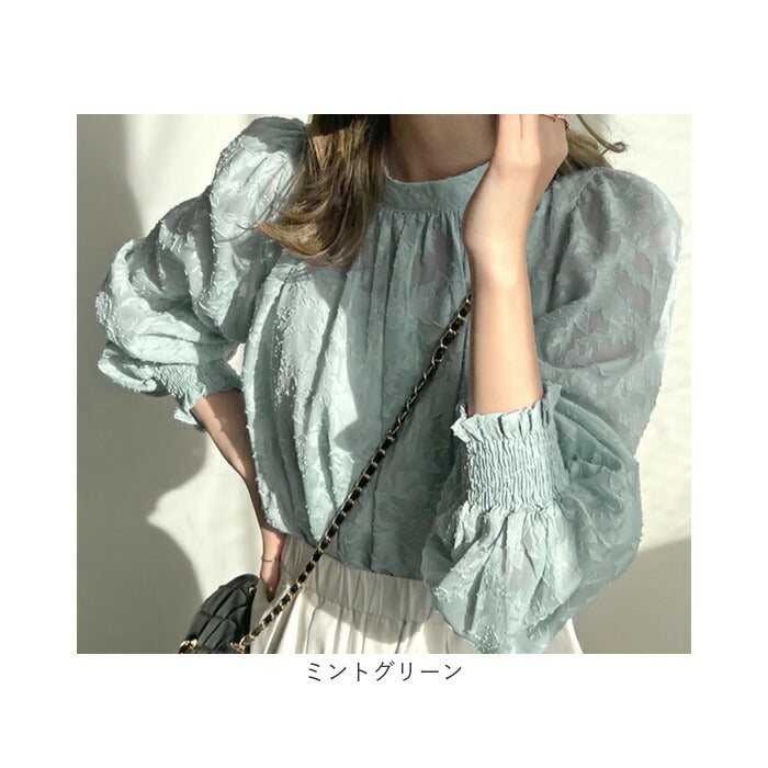 ・膨らみを持たせたシルエットがキュート!気になる腕周りをカバー、袖口にはギャザーゴム入り。