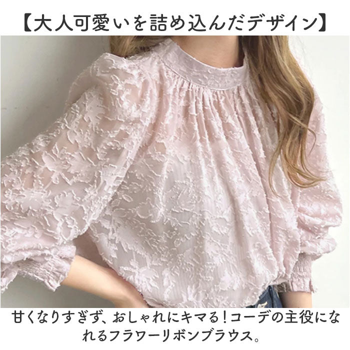 ・甘くなりすぎず、おしゃれにキマる!コーデの主役になれるフラワーリボンブラウス。