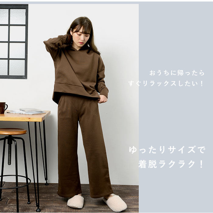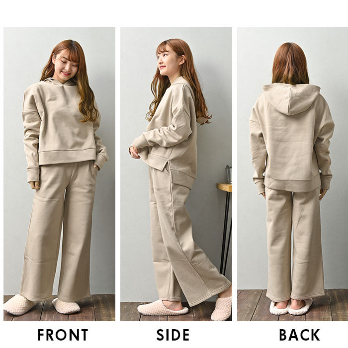 レディース ルームウェア 上下セット 長袖 通販 ワイドパンツ 長ズボン プルオーバー パーカー フーディ パジャマ 冬 秋冬 スウェット 上下 おしゃれ シンプル 無地 カジュアル 裏起毛 あったか ルームウエア ナイトウエア ルームウェア 部屋着