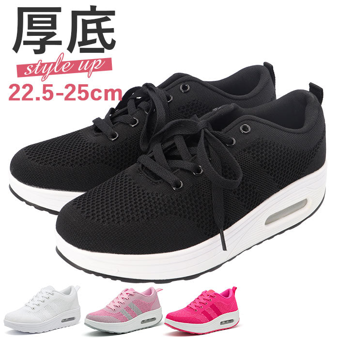 レディース 厚底 スニーカー 軽量 レースアップ 通販 厚底スニーカー ウォーキングシューズ スポーツシューズ トレーニングシューズ スニーカー 運動靴 厚底靴 船型底 履きやすい
