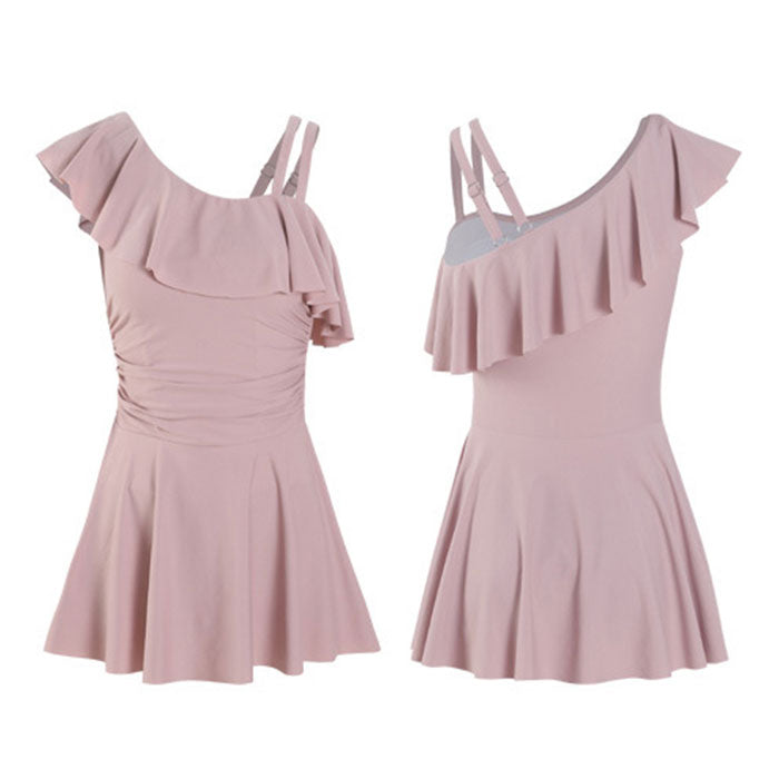 ・肩からバックにかけてのフリルとお腹まわりのギャザーで気になる体型もカバーできちゃう◎