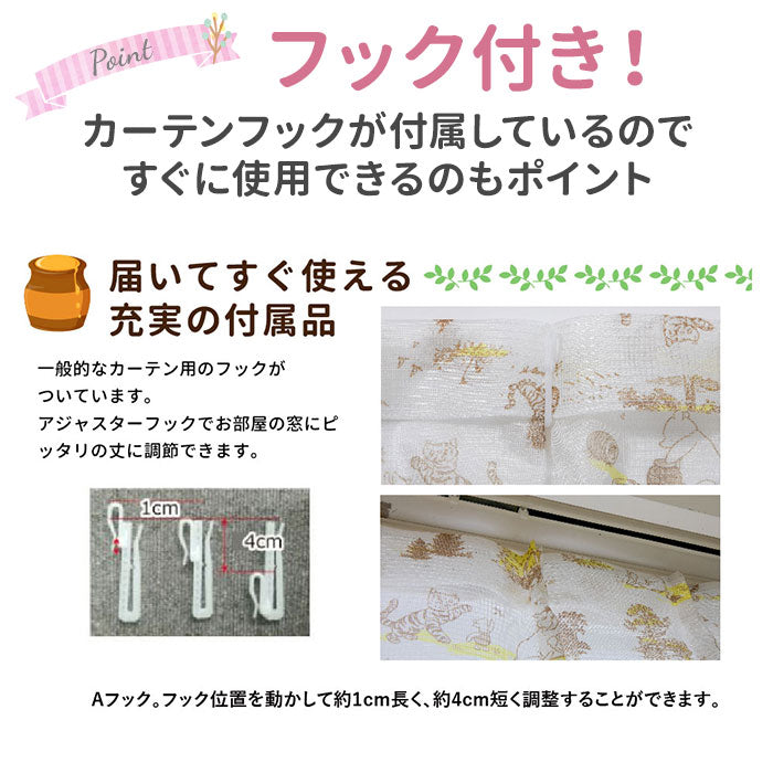 ・キャラクターが全体的にあしらわれた、窓辺をおしゃれに彩る1.5倍ヒダのレースカーテン2枚組が登場。