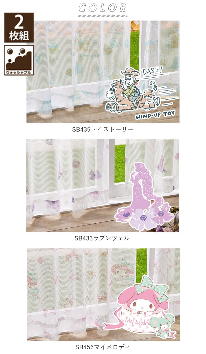 レースカーテン 2枚組 通販 かわいい 可愛い ピンク ディズニー おしゃれ 女の子 男の子 トイストーリー ラプンツェル マイメロディ 100×133 100×176 子供部屋 2枚セット 大人 向け