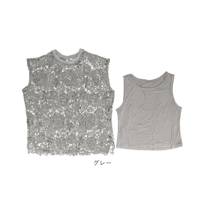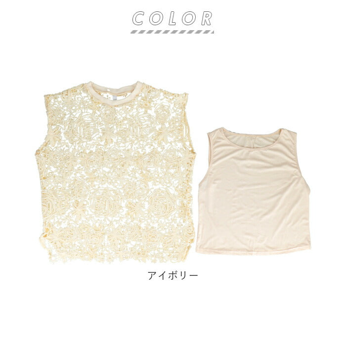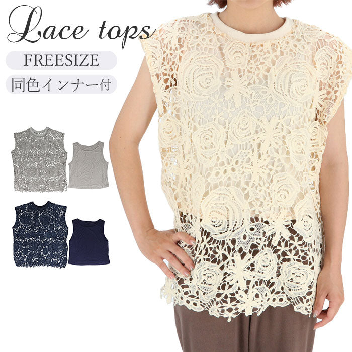 ・華やかな総レース仕立て!コットン100%素材で涼やかな、レーストップスが新登場♪