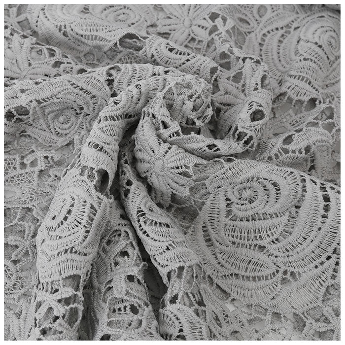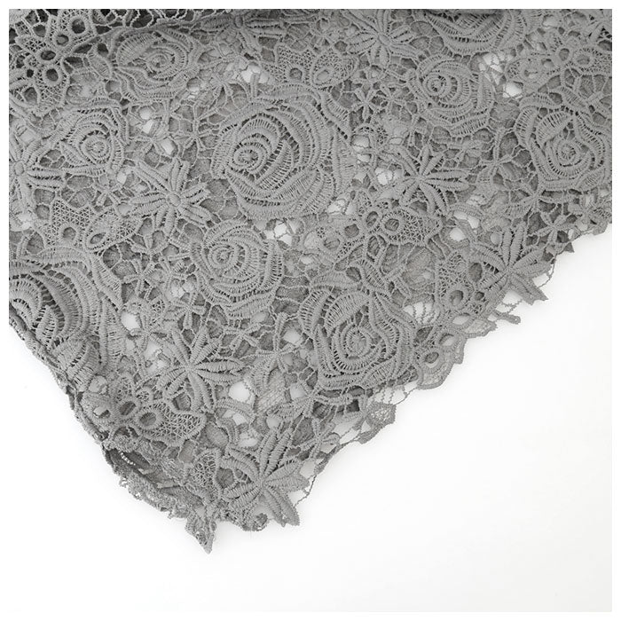 ・シルエットはゆったりとしたボックス型。立体的なレースのモチーフをそのまま生かしたヘムラインがデザインのポイントに。