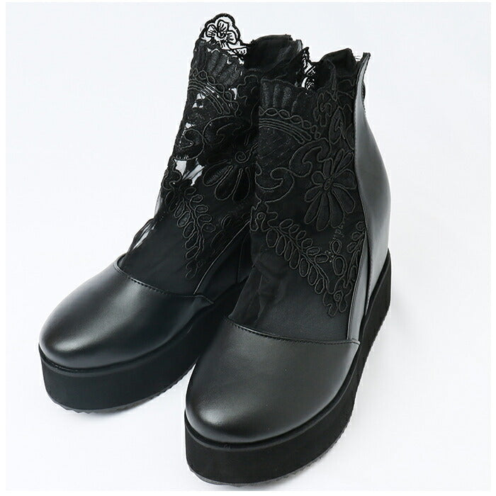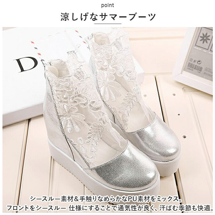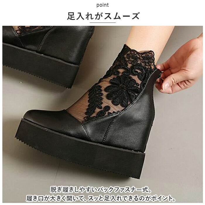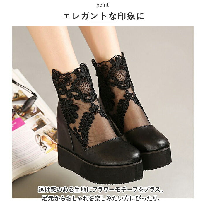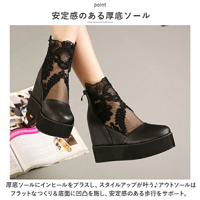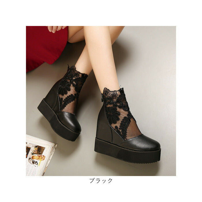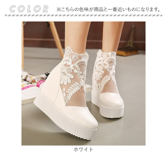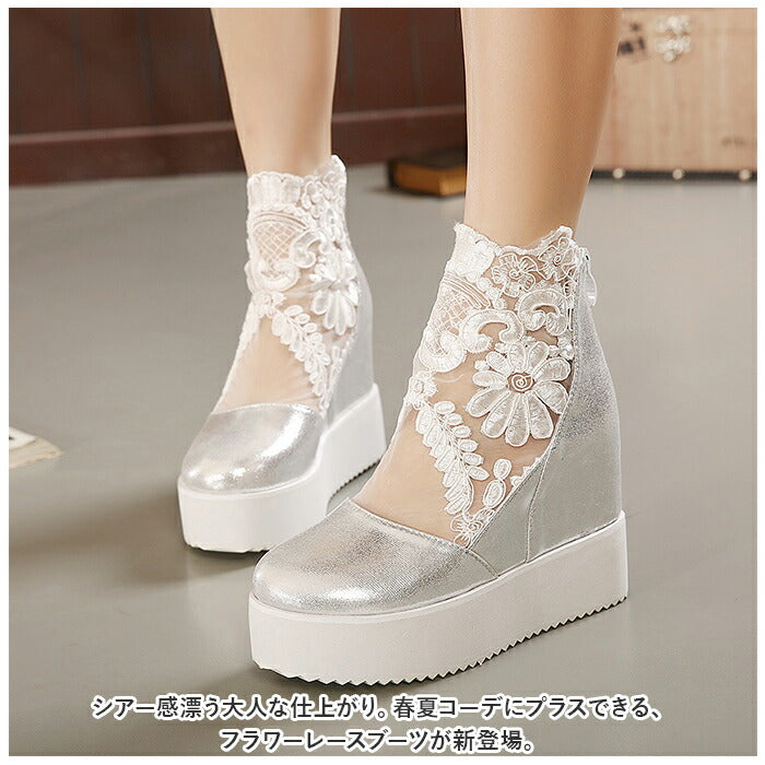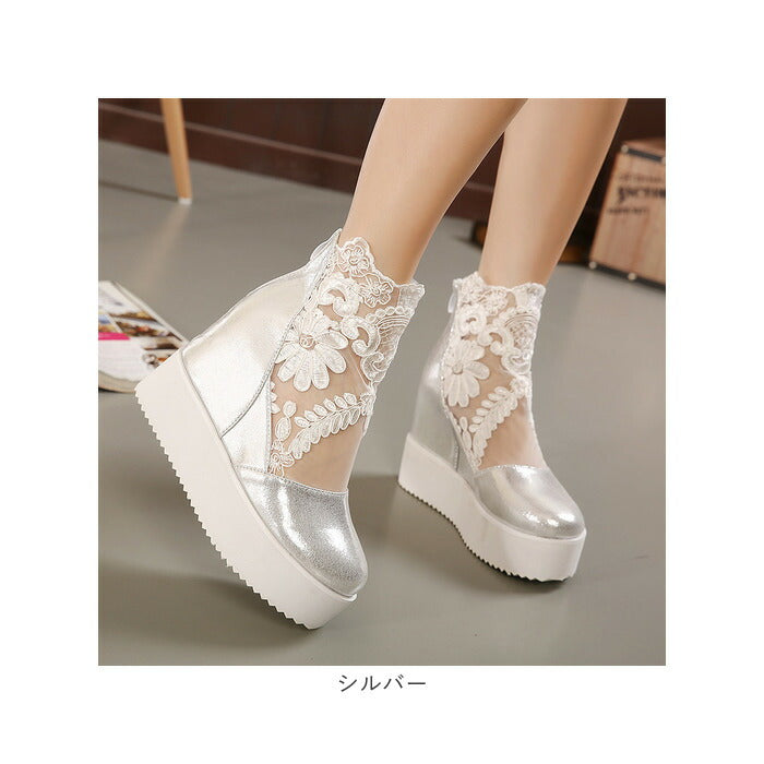 レース ブーツ 通販 スニーカー インヒールスニーカー プラットフォームスニーカー 靴 くつ 厚底 厚底スニーカー インヒール 花柄 フラワー シースルー 透け メッシュ ブライダルシューズ