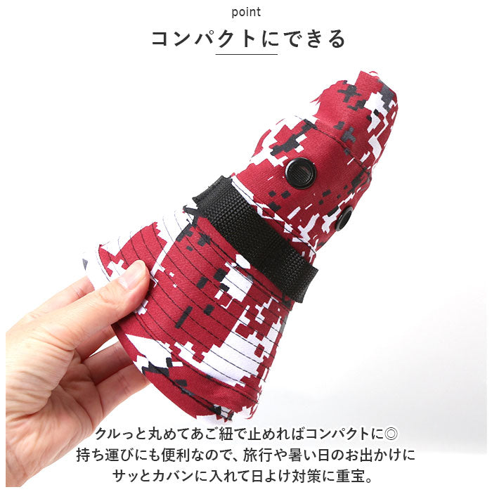 ・クルっと丸めてあご紐で止めればコンパクトに◎持ち運びにも便利なので、旅行や暑い日のお出かけにサッとカバンに入れて日よけ対策に重宝。