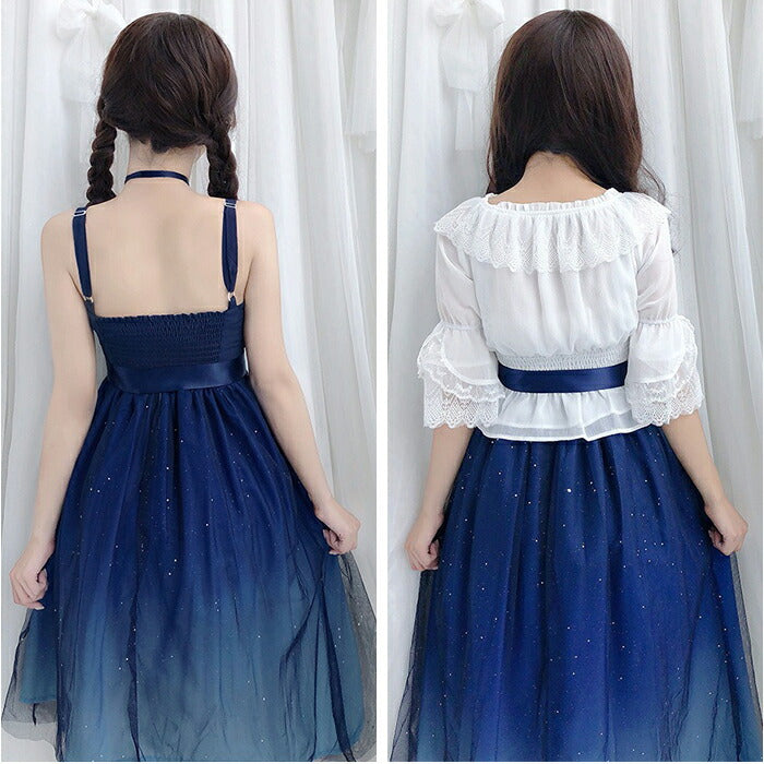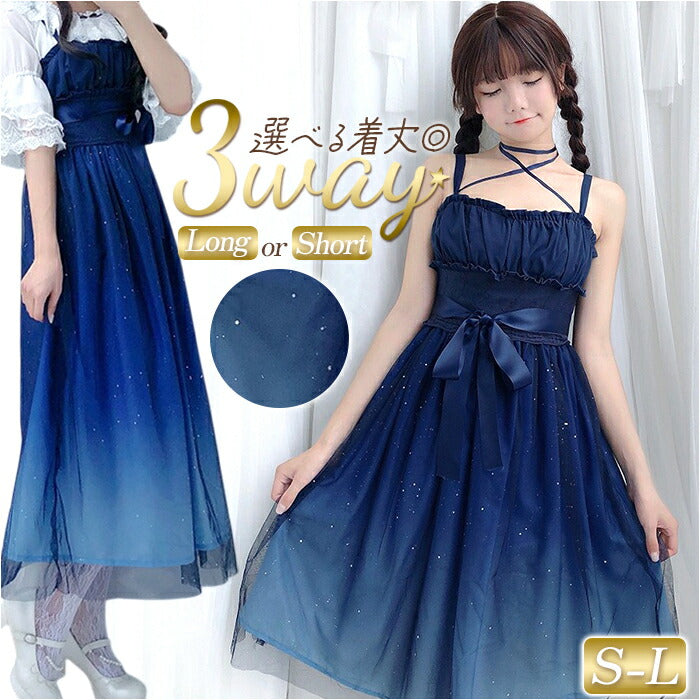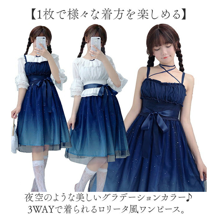 ・夜空のような美しいグラデーションカラー♪3WAYで着られるロリータ風ワンピース。