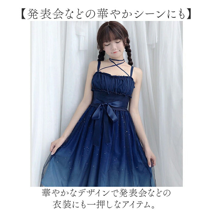 ロリータ ワンピース 通販 キャミワンピ キャミソールドレス メイド服 青 グラデーション コスプレ 衣装 ダンス衣装 ハロウィン 仮装 ブルー ゴスロリ 萌え カジュアル レディース 大人