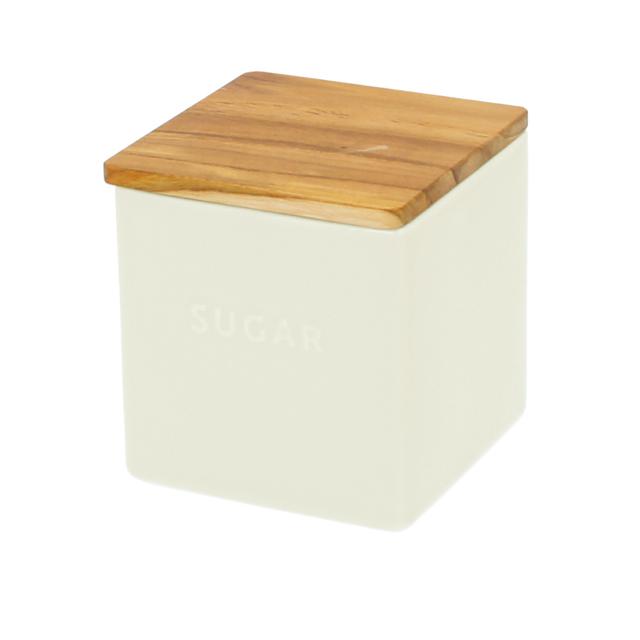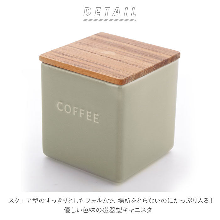 ・スクエア型のすっきりとしたフォルムで、場所をとらないのにたっぷり入る!優しい色味の磁器製キャニスター。