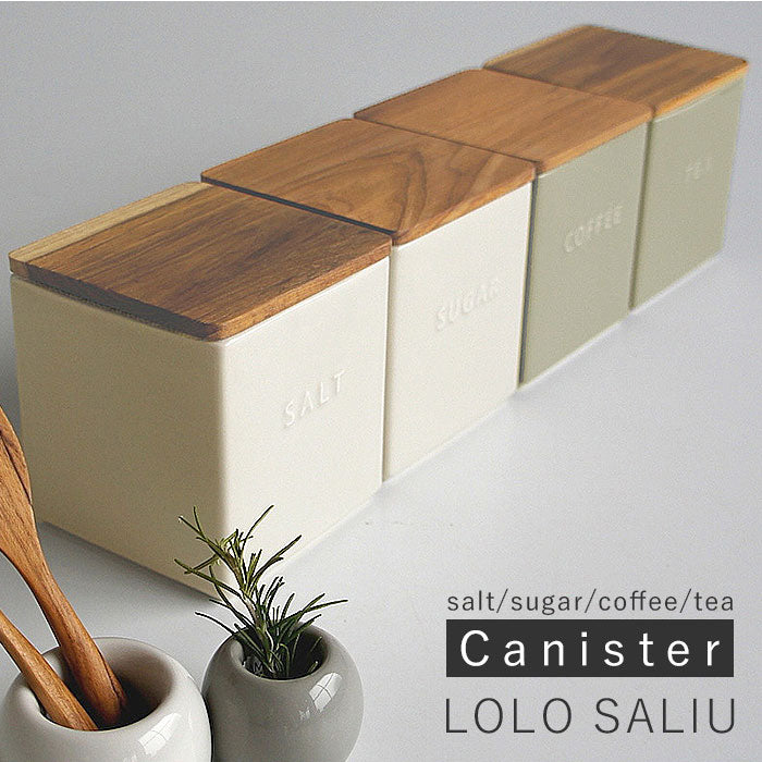 ロロ キャニスター 通販 陶器 おしゃれ シンプル モノトーン チーク材 SALT 塩 SUGAR 砂糖 TEA お茶 COFFEE コーヒー 調味料入れ 日本製 LOLO SALIU BS01 調味料入れ 保存容器
