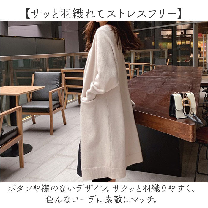 ロングカーディガン レディース 通販 長袖 おしゃれ きれいめ シンプル カーデ ロングカーデ 冷房対策 春秋 ゆったり 羽織り 無地 ビジネス オフィス 襟なし オフィスカジュアル