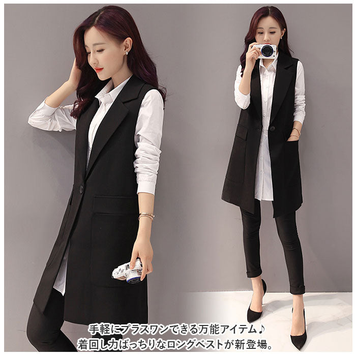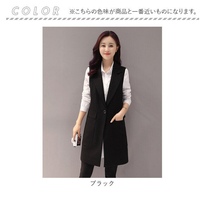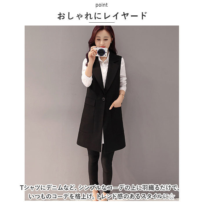 ロングジレ レディース 通販 ロングベスト ジレ ベスト ジレンチ トレンチベスト アウター トップス ノースリーブ ロング丈 スリム 通勤 通学 カジュアル きれいめ フォーマル 前開き