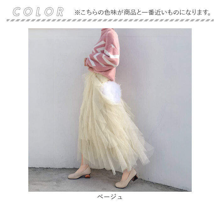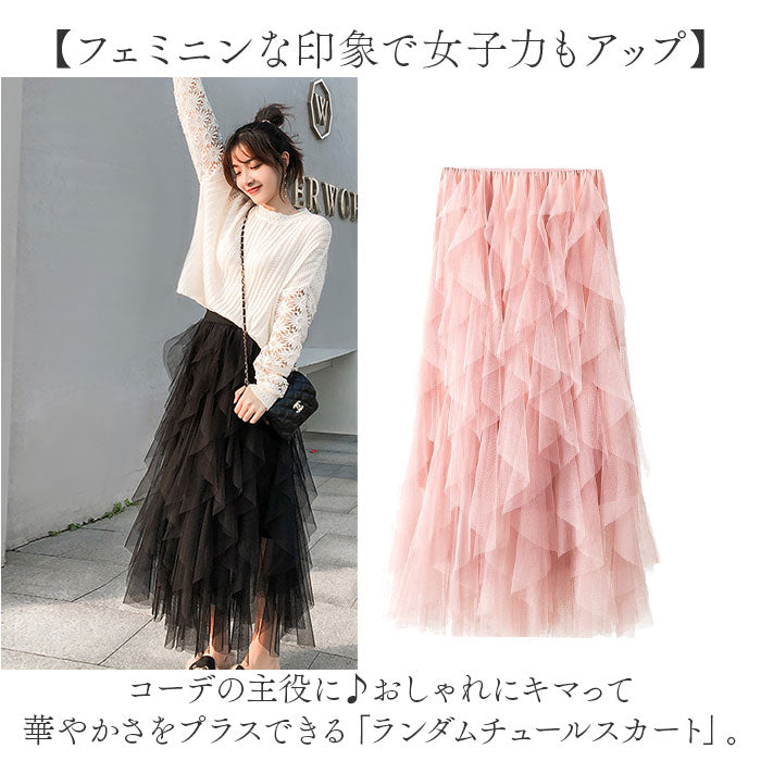 ・コーデの主役に♪おしゃれにキマって華やかさをプラスできる「ランダムチュールスカート」。