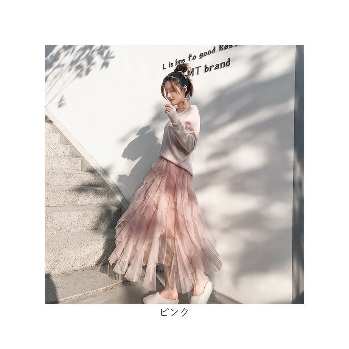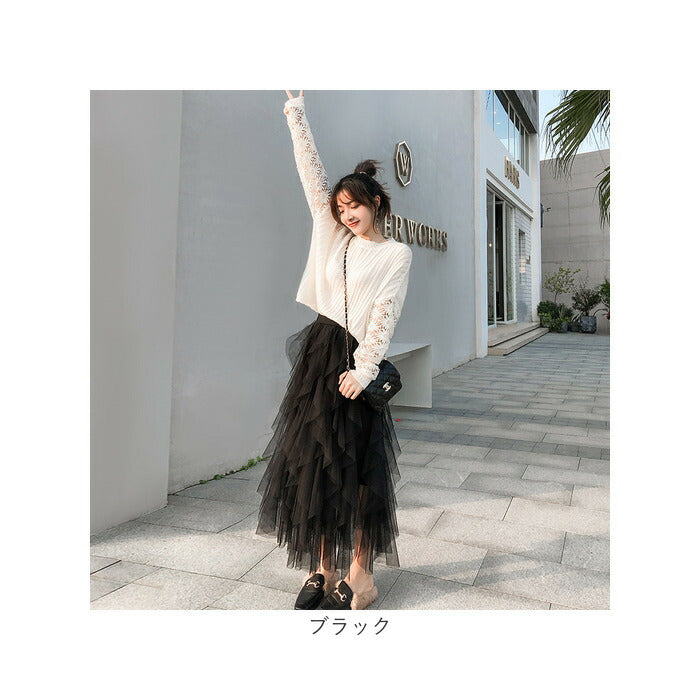 ・立体感が生まれるランダムチュール。歩くたびにひらひら揺れて、コーデを格上げ♪