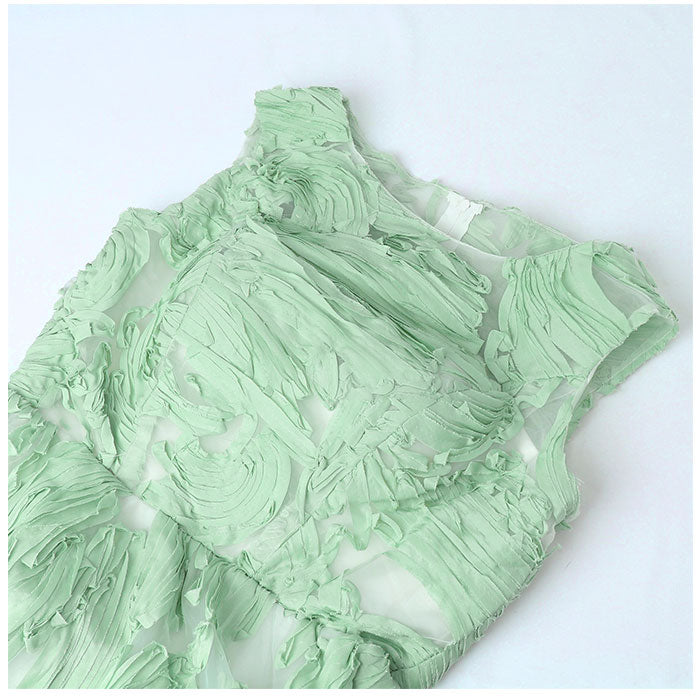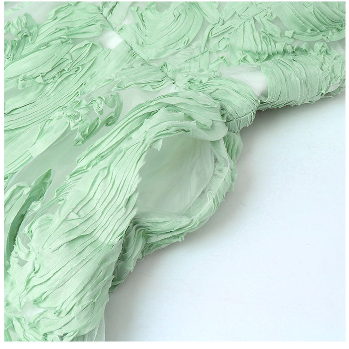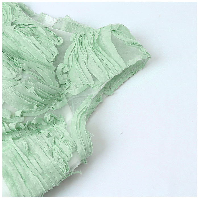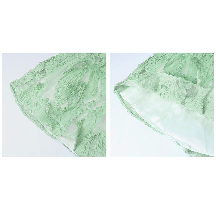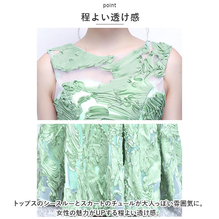 ・トップスのシースルーとスカートのチュールが大人っぽい雰囲気に。女性の魅力がUPする程よい透け感。
