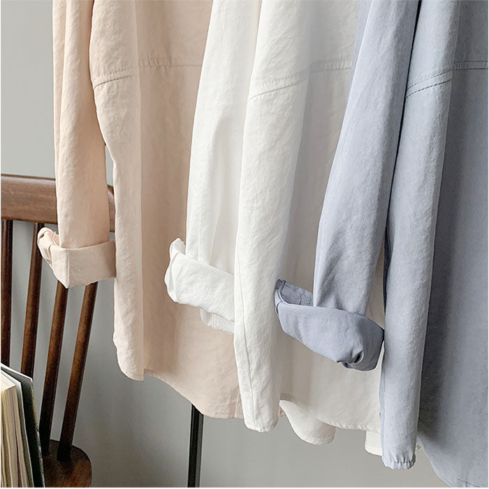 ・シンプルだけど今っぽくキマる☆落ち感がおしゃれな、長袖 シャツブラウス が登場。