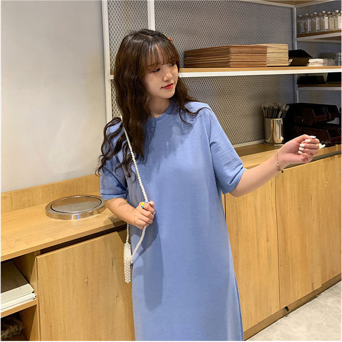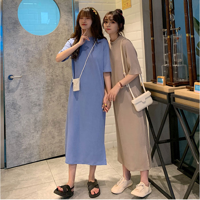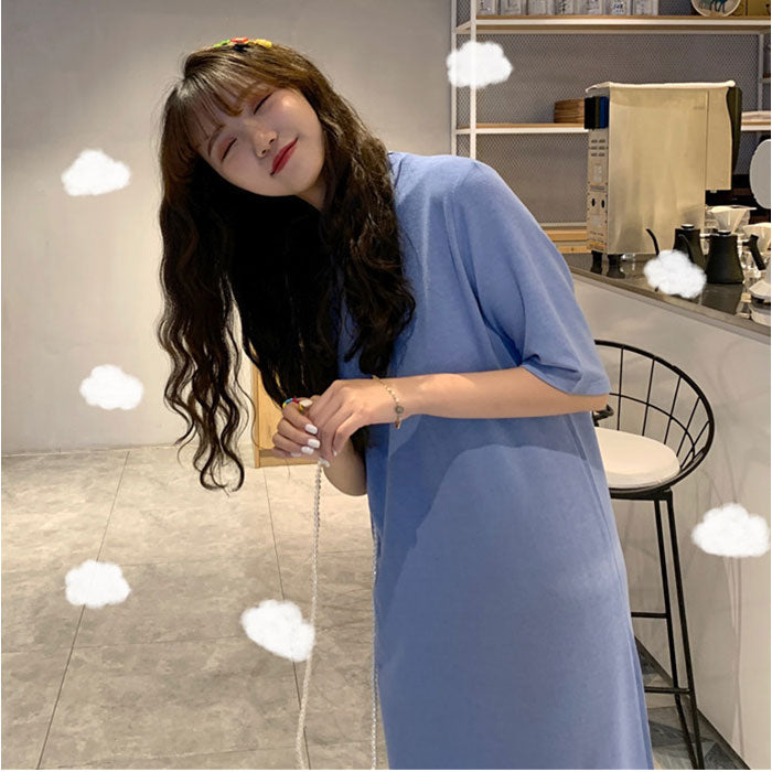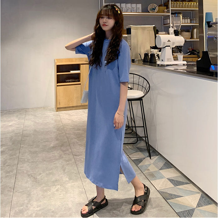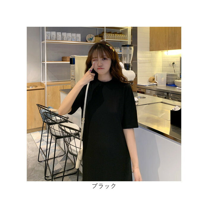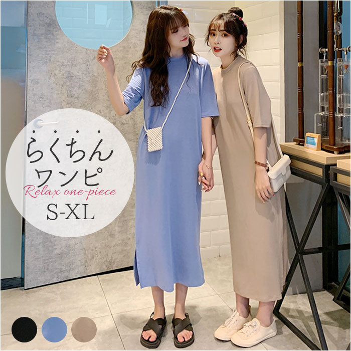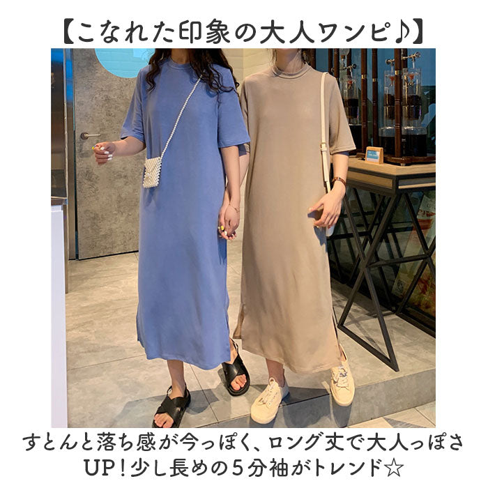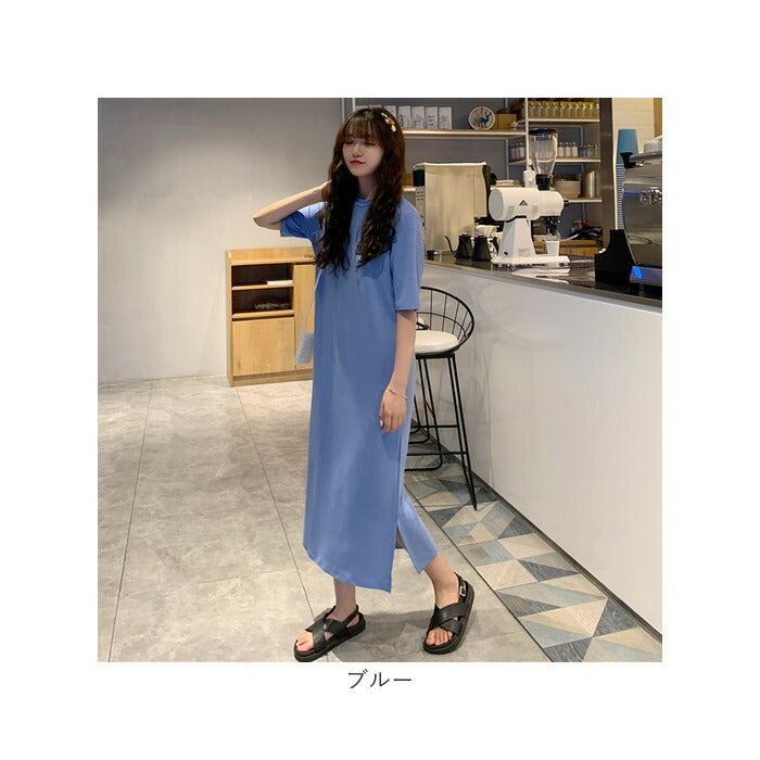 ロングワンピース 半袖 通販 カットソー ワンピース ワンピ ロング丈 レディース Tシャツワンピース ロングワンピ Tシャツワンピ クルーネック サイドスリット 吸湿性 通気性 ゆったり