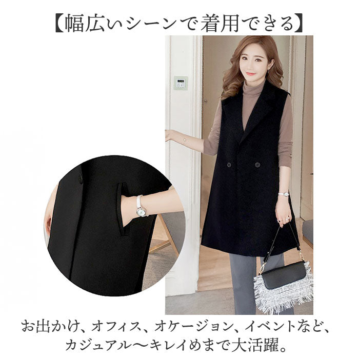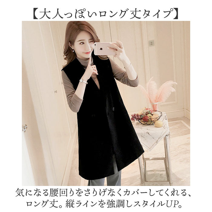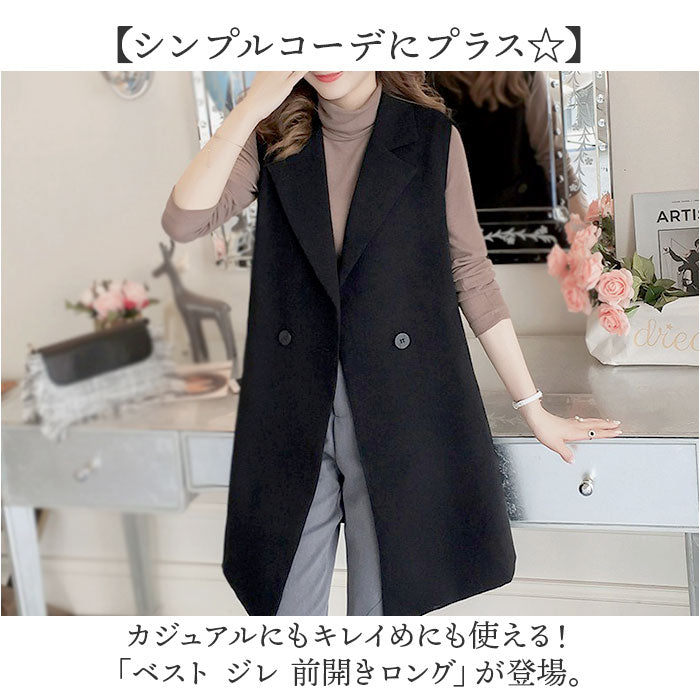 ロング ジレ レディース 通販 ベスト ロングジレ チョッキ ウェストコート ロング丈 ノースリーブ はおりもの 羽織り きれいめ 体型カバー フォーマル 秋冬 春秋 おしゃれ かわいい