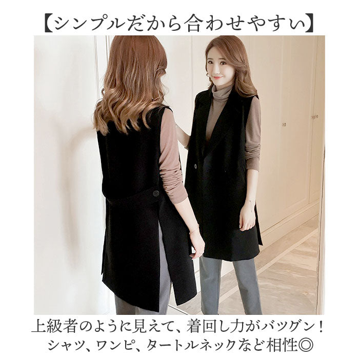 ・カジュアルにもキレイめにも使える!「ベスト ジレ 前開きロング」が登場。