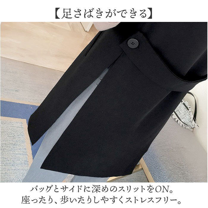 ・バッグとサイドに深めのスリットをON。座ったり、歩いたりしやすくストレスフリー。