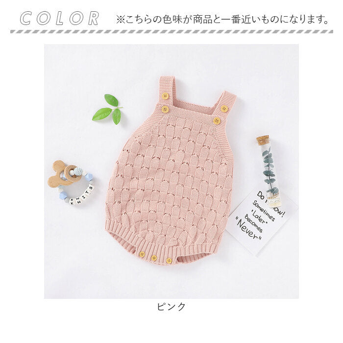 ロンパース ベビー服 春夏 通販 ベビー 赤ちゃん 女の子 男の子 ニットサロペット 綿 コットン ニット ベビーロンパース 無地 重ね着 お出かけ 外出 かわいい 可愛い おしゃれ オシャレ