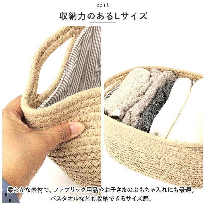 ロープバスケット おしゃれ 通販 Lサイズ カゴ かご 籠 バスケット 布 出しっぱなし 収納 収納ケース 収納ボックス 片付け 整理整頓 寝室 子供部屋 リビング タオル 衣類 ランドリー
