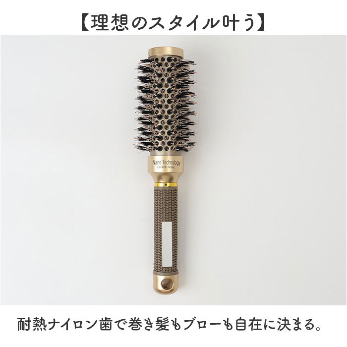 ロールブラシ 豚毛 通販 ヘアブラシ ブラシ カールブラシ ブローブラシ ヘアアレンジ くし 櫛 巻き髪 前髪 スタイリング ヘアセット カール ブロー カーリー パーマ ヘアケア ゴールド