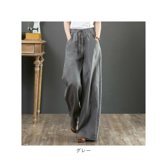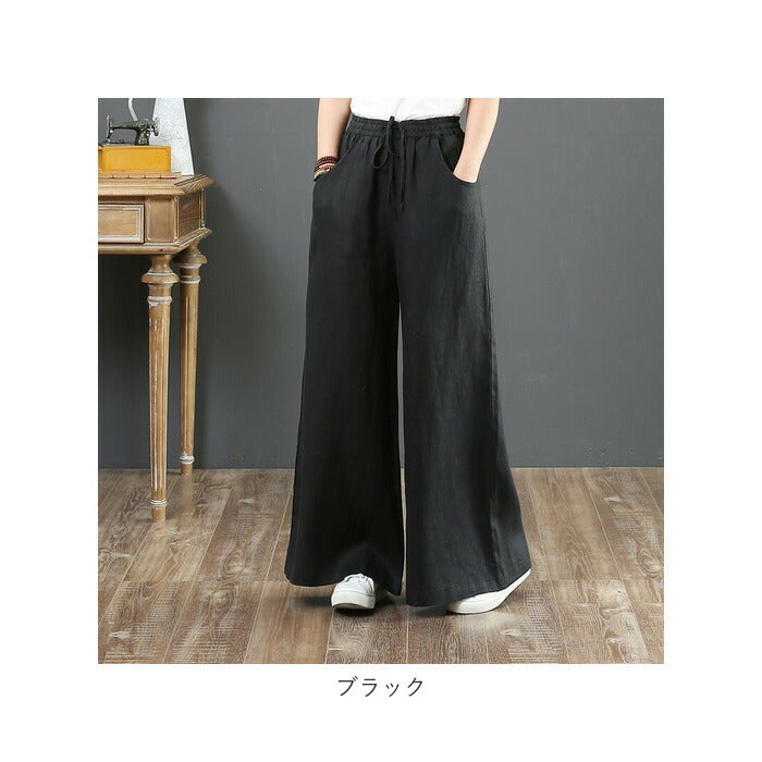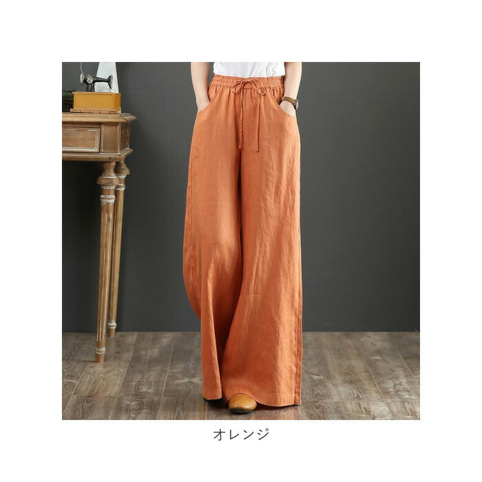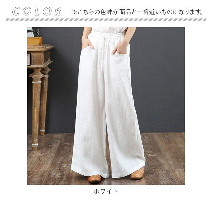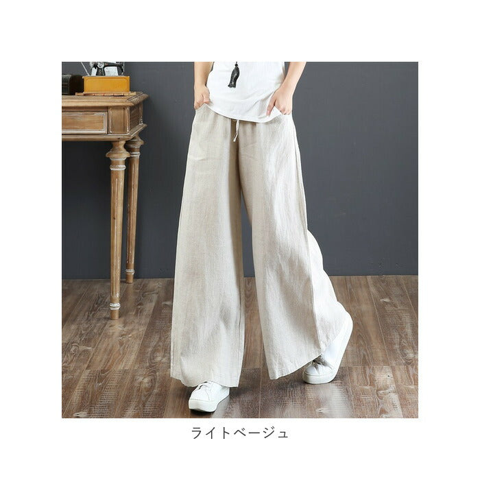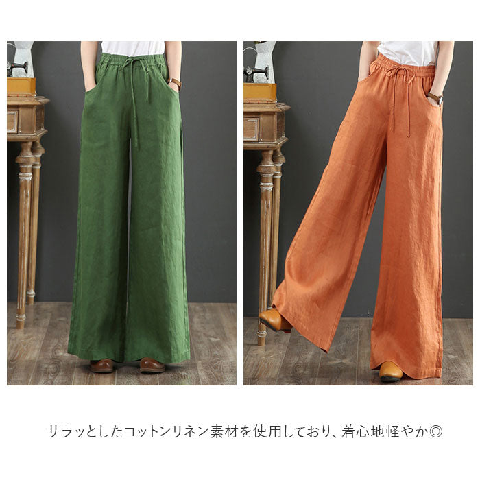 ワイドパンツ レディース リネン 通販 ロングパンツ リネンパンツ ロング丈 フレアパンツ フレア 体型カバー ゆったり コットン リネン 春 夏 秋 麻 綿 おしゃれ シンプル ズボン カジュアル ウエストゴム 大人 かわいい ボトムス