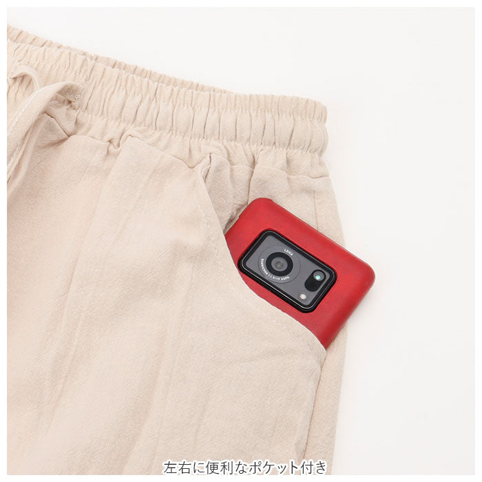・締めつけ感のないウエストゴム仕様。紐でサイズ調節も可能。