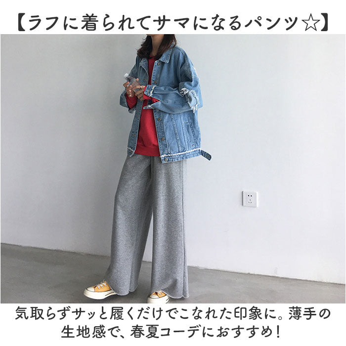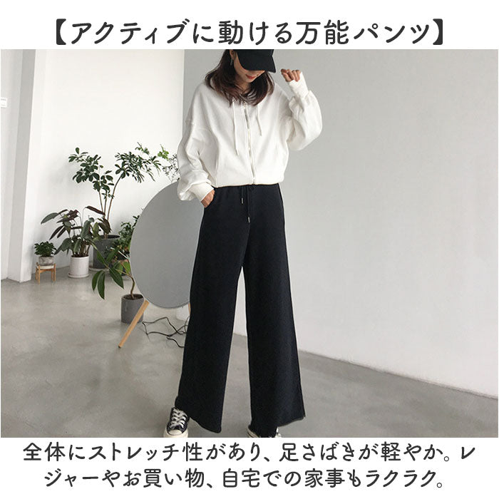 ワイドパンツ レディース 春秋 ロングパンツ 通販 スウェットワイドパンツ スウェットパンツ スウェット ワイド パンツ 長ズボン ズボン 綿 コットン ボトムス ウエストゴム ゆったり