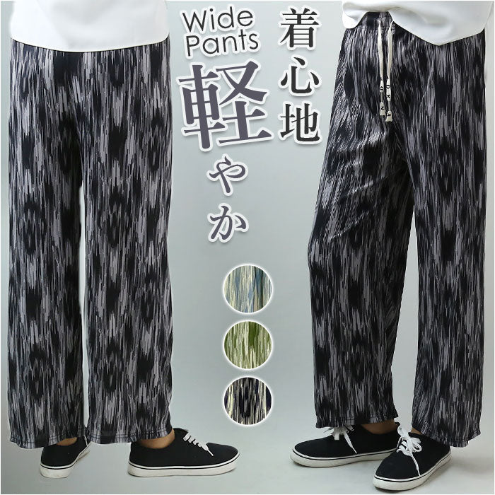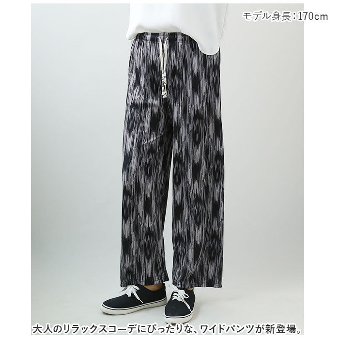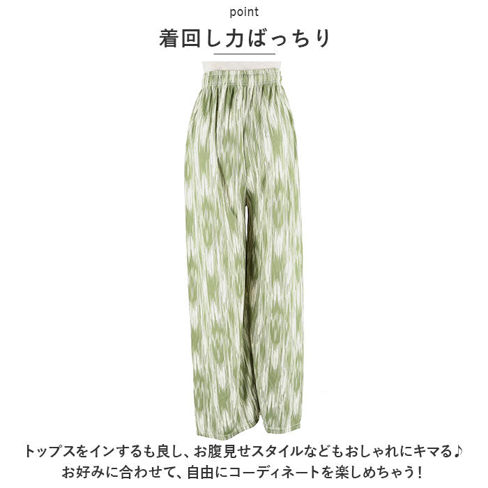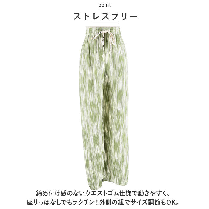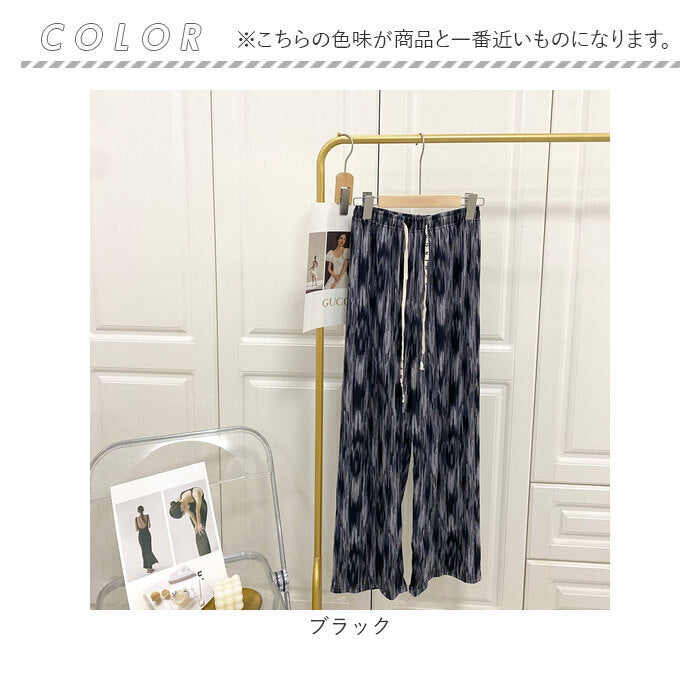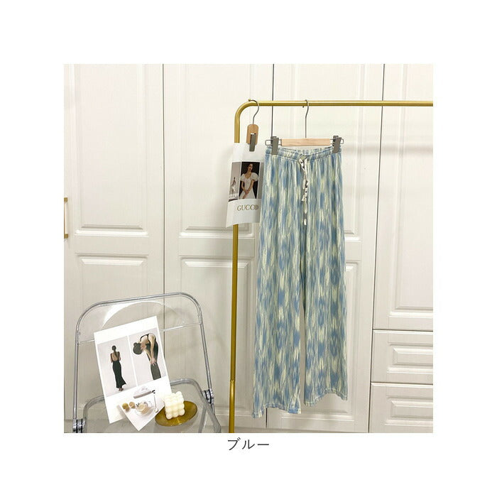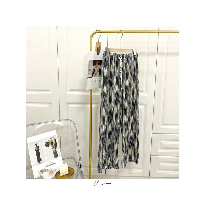 ワイドパンツ レディース 柄 通販 ジャガードパンツ セミワイドパンツ セミワイド ズボン 夏パンツ 長ズボン ロング丈 ロング ワイド パンツ ゆったり ボトムス ウエストゴム カジュアル
