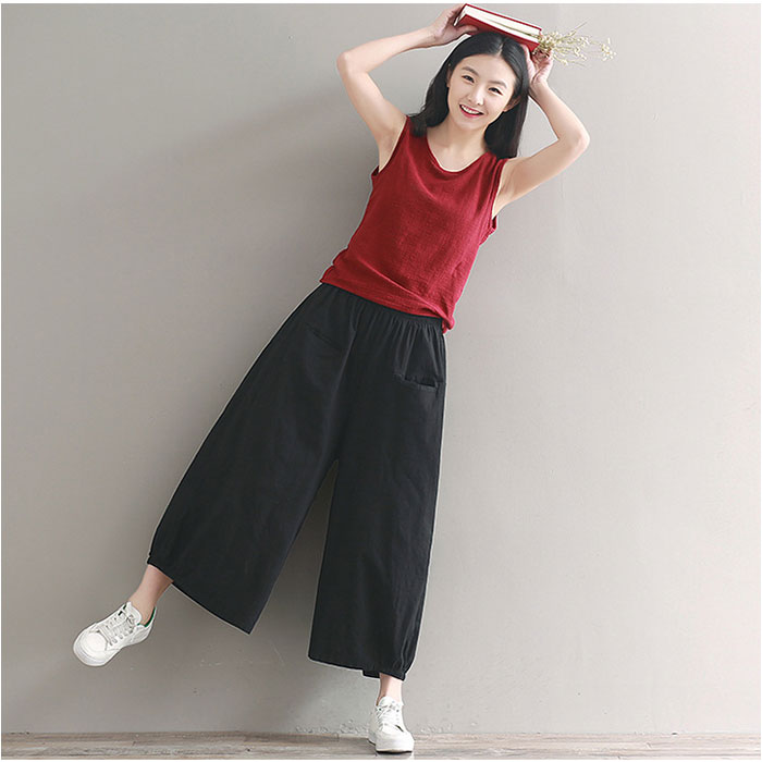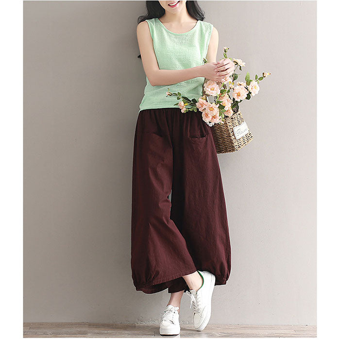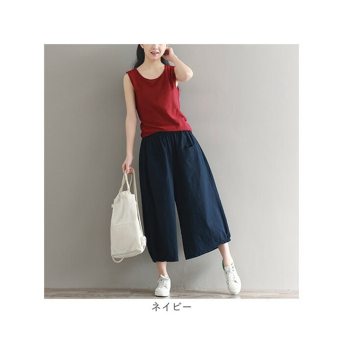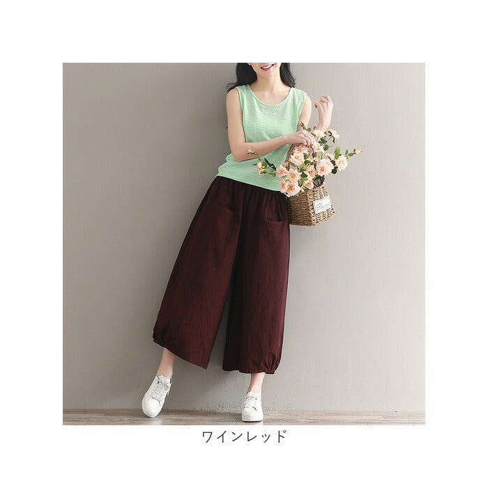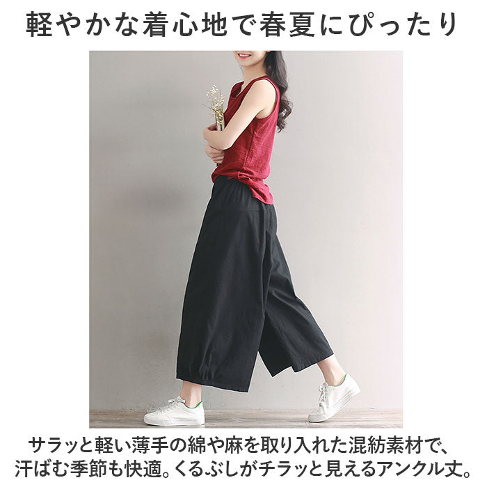 ・サラッと軽い薄手の綿や麻を取り入れた混紡素材で、汗ばむ季節も快適。くるぶしがチラッと見えるアンクル丈。