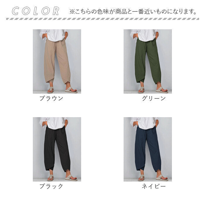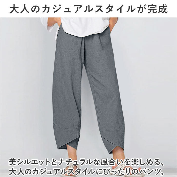 ワイドパンツ レディース 通販 パンツ レディースパンツ 動きやすい ボトムス ウエストゴム ズボン おしゃれ ロングパンツ 9分丈 ルームウェア カジュアル シンプル 無地 薄手 夏 春