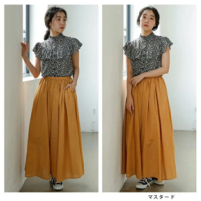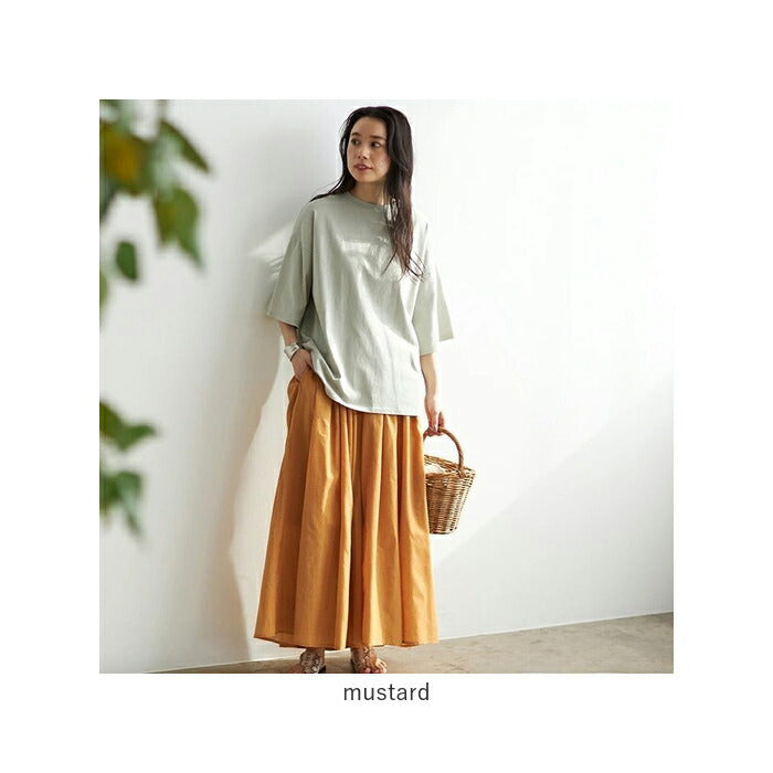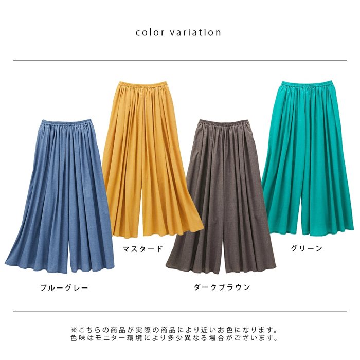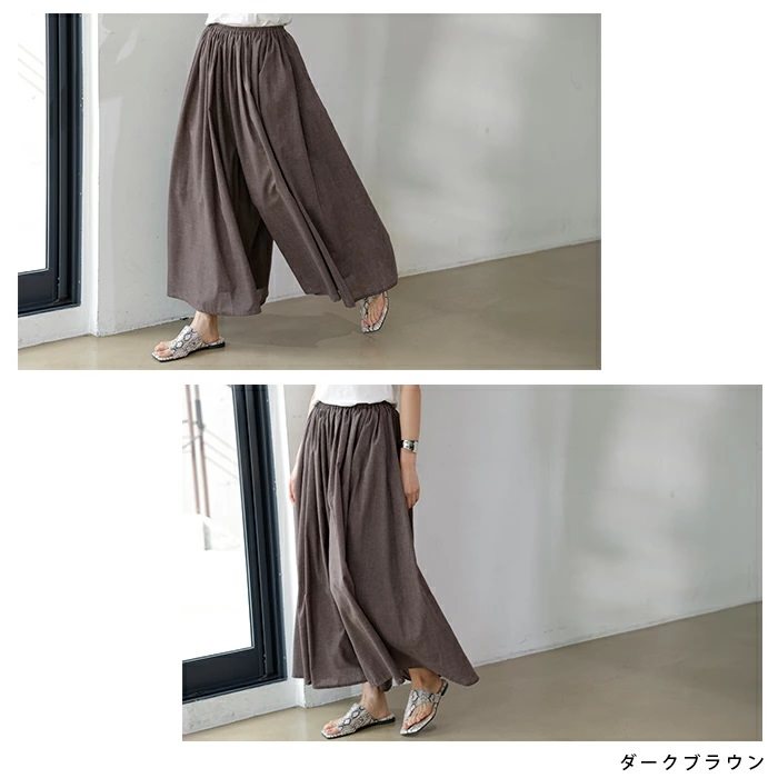 リネン風ふんわりギャザーワイドパンツ