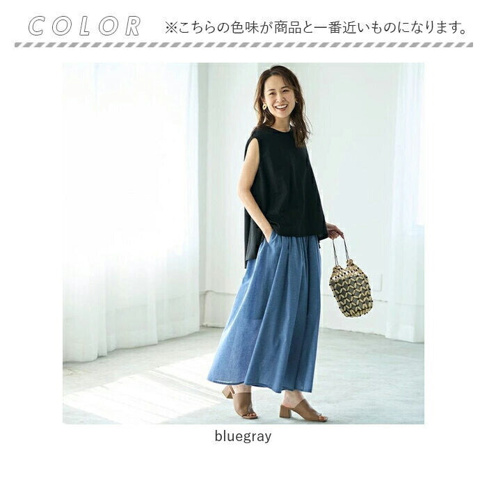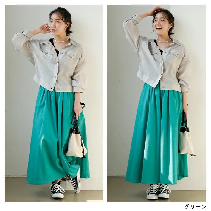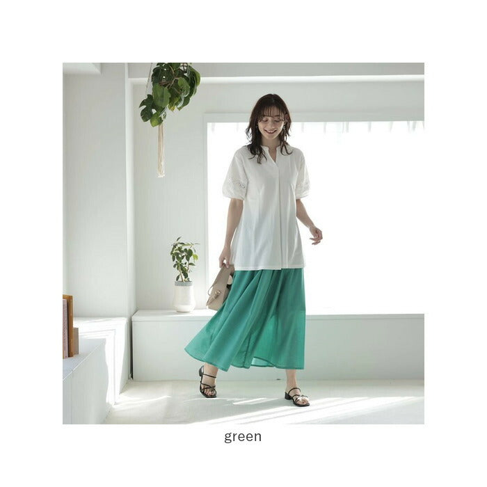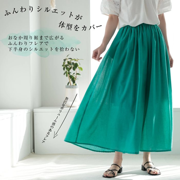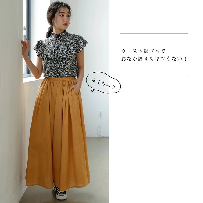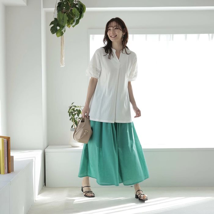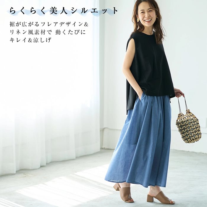 ・リネン風の透け感のある軽い素材で、動くたびにフンワリ。涼しげな印象を与えます。