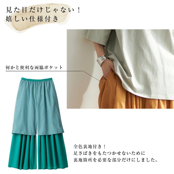 ワイドパンツ レディース 通販 リネン風ふんわりギャザーワイドパンツ ギャザーパンツ フレアパンツ きれいめ 夏用 涼しい 夏 春夏 裏地付き 両脇ポケット付き ゆったり おしゃれ