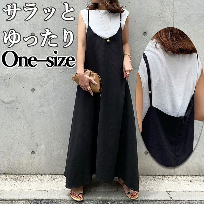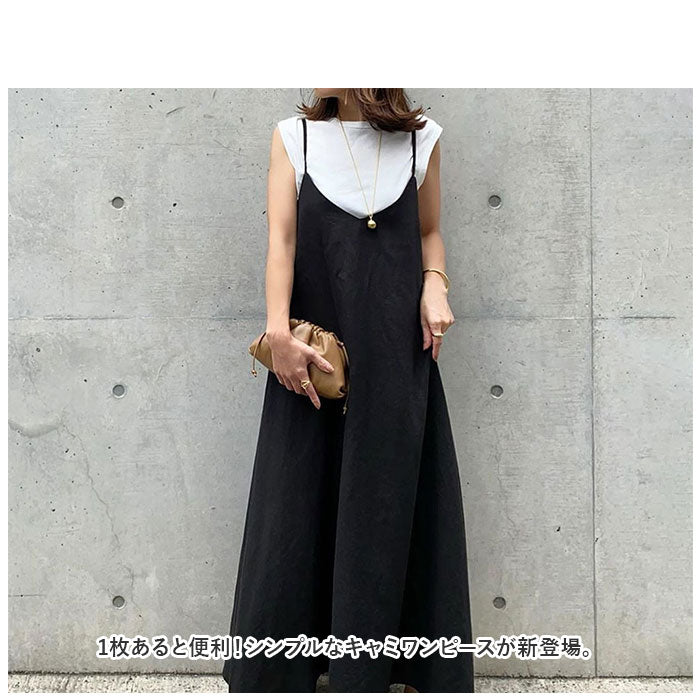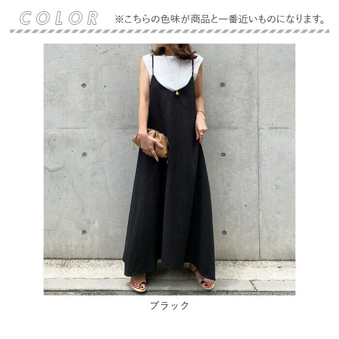 ワンピース キャミワンピース サロペット レディース 通販 キャミソールワンピース キャミソール Aライン フレア ロングワンピース ロング ゆったり カジュアル 無地 ポケット
